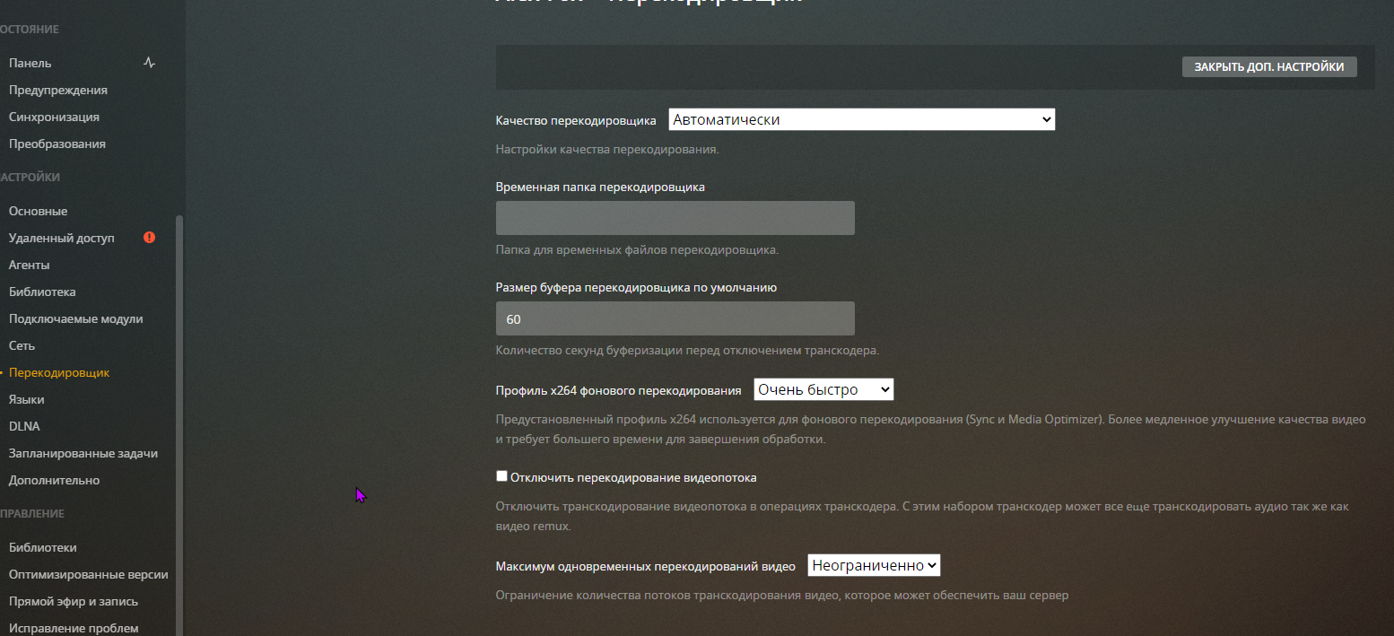 Alex-Fox на компе и на плойке. настройки сервера на сервере (удаленный доступ, перекодировщик), и на клиенте (качество видео локальное, удаленное, прямое воспроизведение)