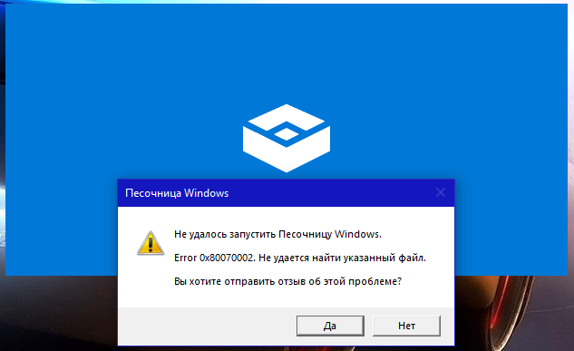 благодарю. включил компонент "песочница windows", вот только ничего не поменялось. надо ещё что-то включить? как пользоваться этой инопланетянской хренью? upd. нашёл в программах "windows sandbox", не запускается, Error 0x80070002(файл не найден). WTF?