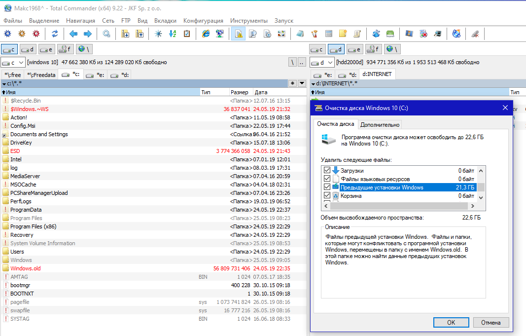 Но это же лишние хитрости и манипуляции. ведь есть штатные системные средства. по идее Windows.old должна самоликвидироваться через неделю или месяц, где то читал. Ещё в корне пару "не нужных" папок было. удалил в корзину, вроде и правда не нужны.