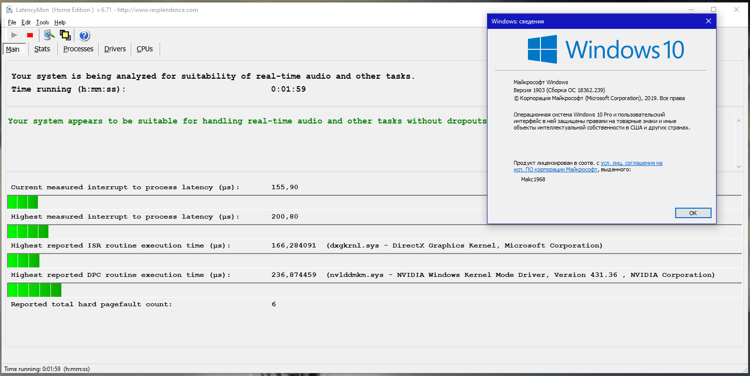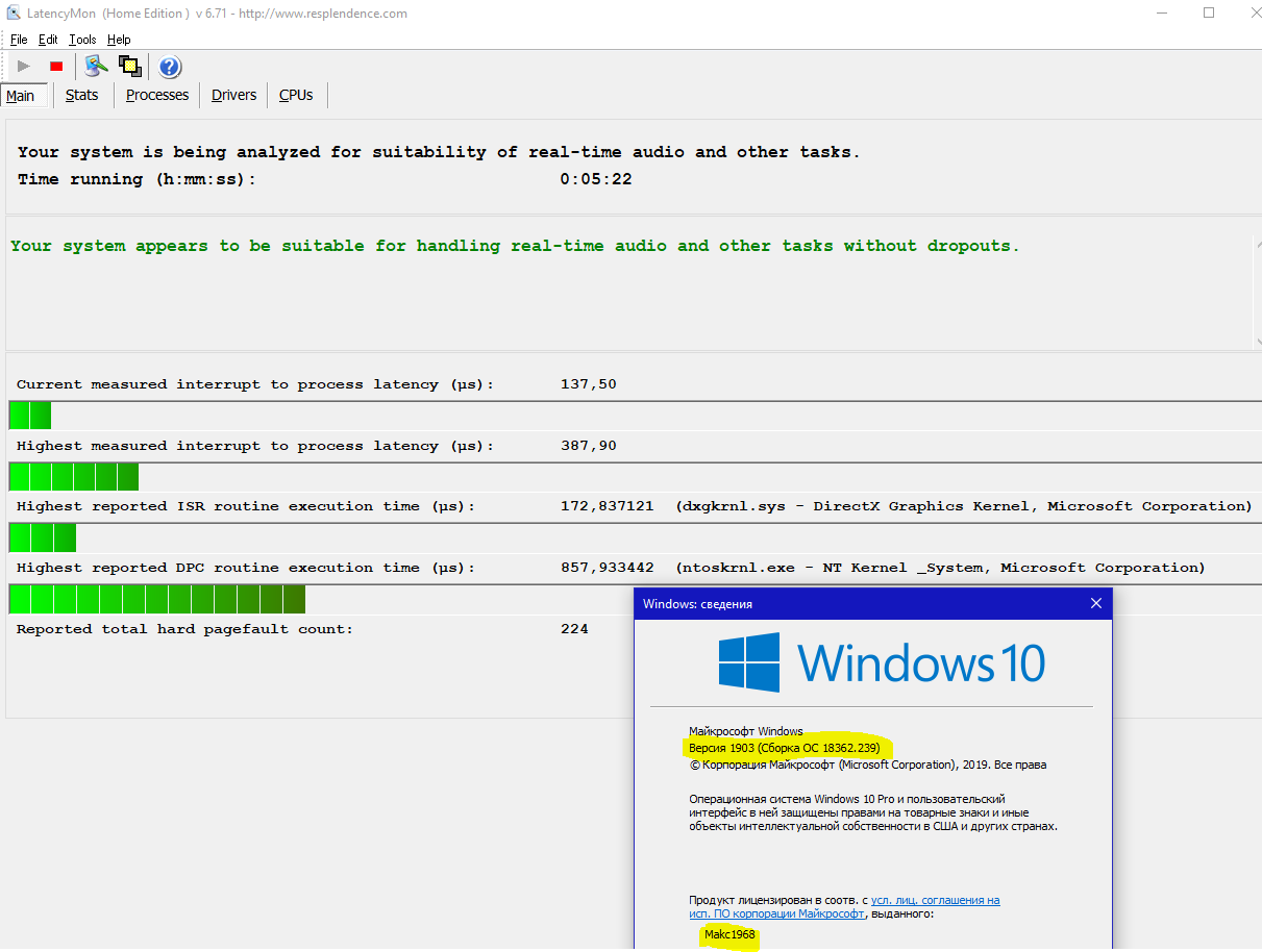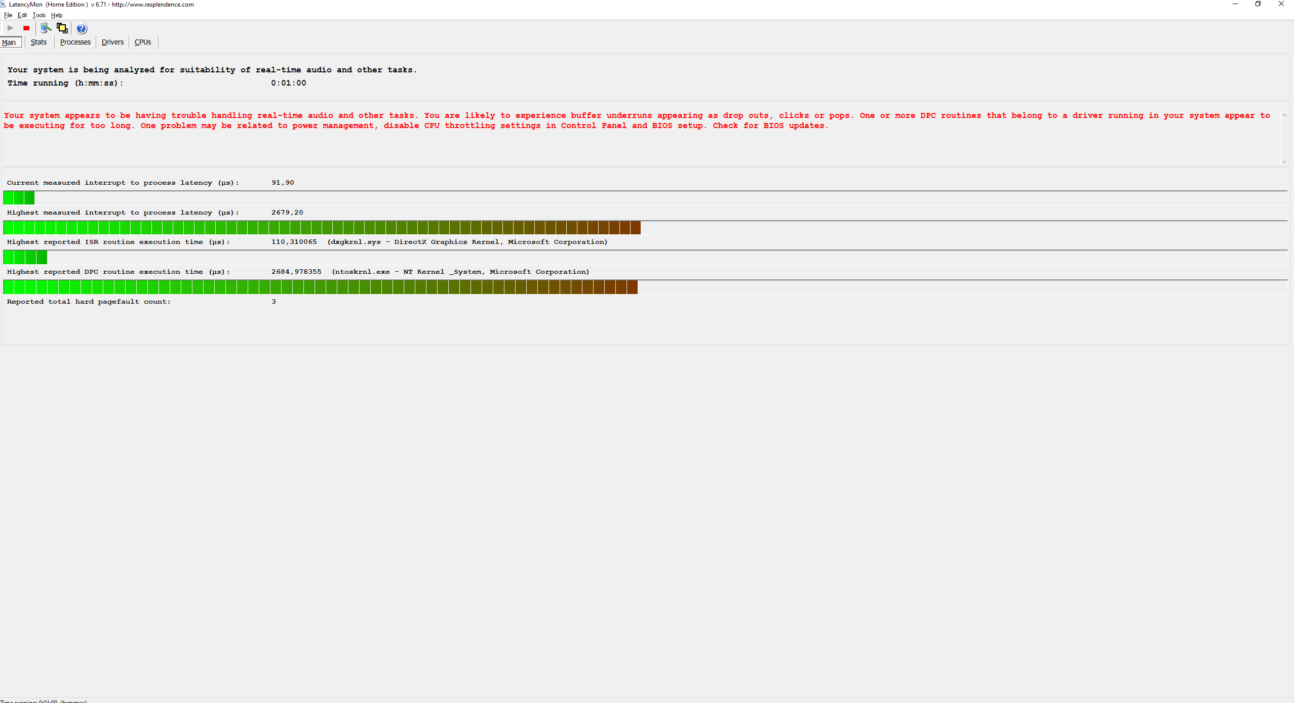 NOTE: some processes were hit by hard pagefaults. If these were programs producing audio, they are likely to interrupt the audio stream resulting in dropouts, clicks and pops. Check the Processes tab to see which programs were hit.