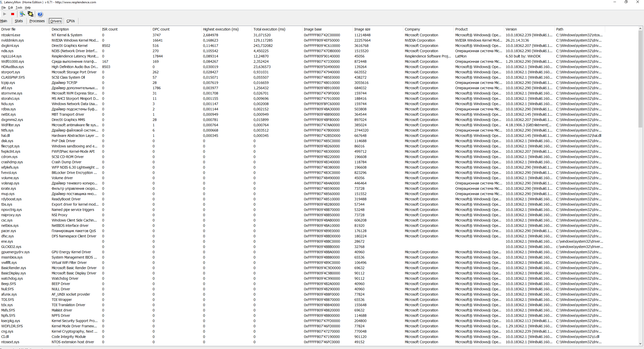 Highest reported total DPC routine time (%): 0,015712 Driver with highest DPC total execution time: nvlddmkm.sys - NVIDIA Windows Kernel Mode Driver, Version 431.36 , NVIDIA Corporation