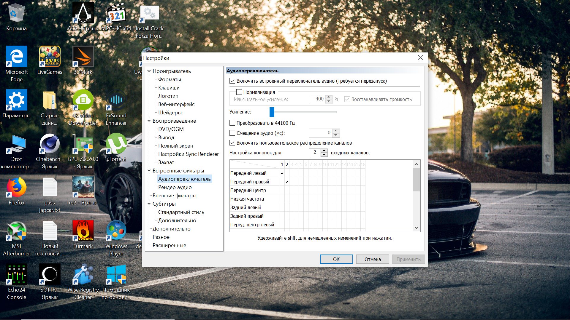 seebox в MPC есть же ручное распределение каналов - какой канал на какой колонке должен играть? Там галочку ставишь аудиопереключателя и чуть ниже галочками где что играть.