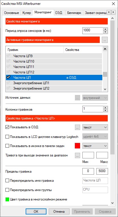 1. Для разблокировки разгона в файлеMSIAfterburner.cfg (Находится в папке, где установлена программа) необходимо прописать следующие значения: UnofficialOverclockingEULA = I confirm that I am aware of unofficial overclocking limitations and fully understand that MSI will not provide me any support on it UnofficialOverclockingMode = 1 2. Для разблокировки напряжения и его мониторинга в том же файле прописываем следующие значения: UnlockVoltageControl = 1 UnlockVoltageMonitoring = 1 (!)В драйвере Catalyst 12.2+ не хватает пары файлов, скачиваем здесь 3. Программа так же "умеет" отображать энергопотребление CPU и GPU в играх. ~ Для этого в Настройках (Настройки > Мониторинг) нужно активировать пункты "Энергопотребление" и "Энергопотребление ЦП". 4. После перезагрузки или включения компьютера слетает профиль разгона. Как сделать, чтобы он грузился вместе с Windows? ~ Одно из решений тут - настройка автозапуска ~ Или штатный метод попробовать, описанный здесь 5. Выскакивает ошибка "В данный момент невозможно произвести внедрение в Diretc3D12 компоненты. Строго рекомендуется перезапустить приложение" Решение описано в этом посте 6. Шпаргалка по оформлению оверлейного дисплея от камрада y0121ck - ОСНОВЫ и ДОПОЛНЕНИЕ
