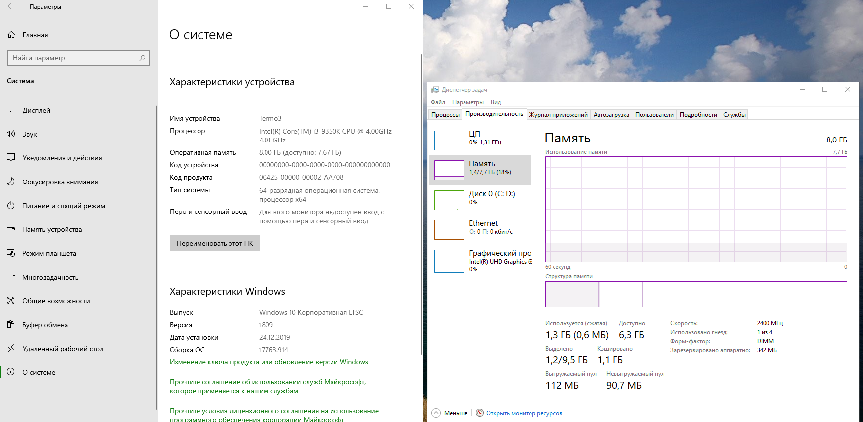 вот свежеустановленная LTSC. удалил авто установленные приложения в пуске (правой кнопкой - удалить), и установило 7 апдейтов. жор озу грубо говоря такой же. процессов в фоне в два раза выше чем в ltsb2016 и равно home x64 1909.
