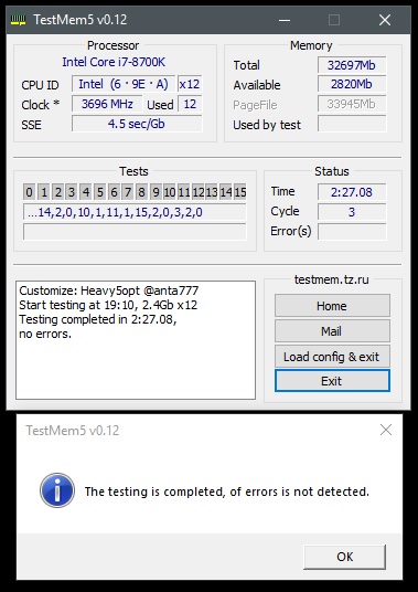 Что значит ошибка конфига? Конфиг был настроен на большее время работы, что не сработало сразу, как задумалось, после чего был изменен, но от этого никаких ошибок не было, нет и не будет. Все ошибки в testmem5 - это ошибки тестируемой памяти- или самих модулей, или таймингов.