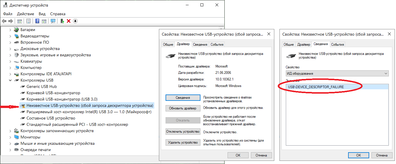 Была на компьютере Win7 PRO x64 -- "покрыл" её посредством MediaCreationTool 10-кой 1909. Сделал "полезные" настройки - всё работает. Но, есть "ложка дёгтя в бочке мёда", а именно -- в диспетчере висит предупреждение c "Сбой запроса дескриптора устройства" (смотрите скан). Перепробовал рекомендации: - запретил отключение электропитания (у всех устр-в USB) - обновление драйверов с поиском в системе и в сети не помогает....