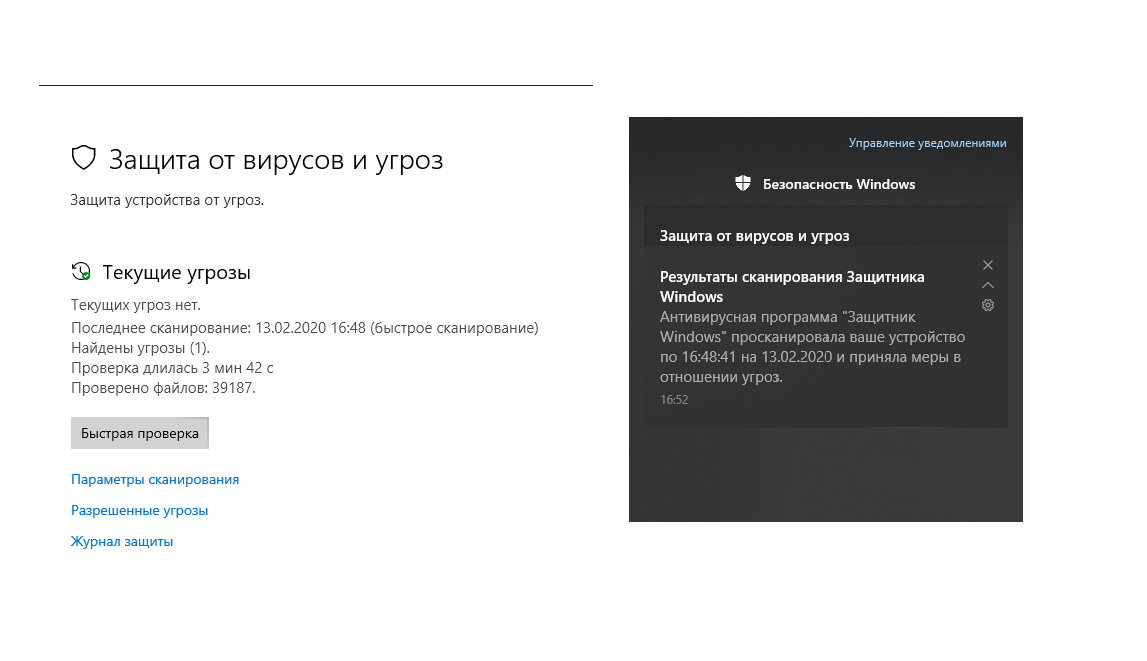 Встроенный антивирусник захандрил. Написал мне как то, что найдена угроза, ничего в журнале, карантине я не нашёл. Теперь каждый раз вот такие сообщения, как это сбросить?