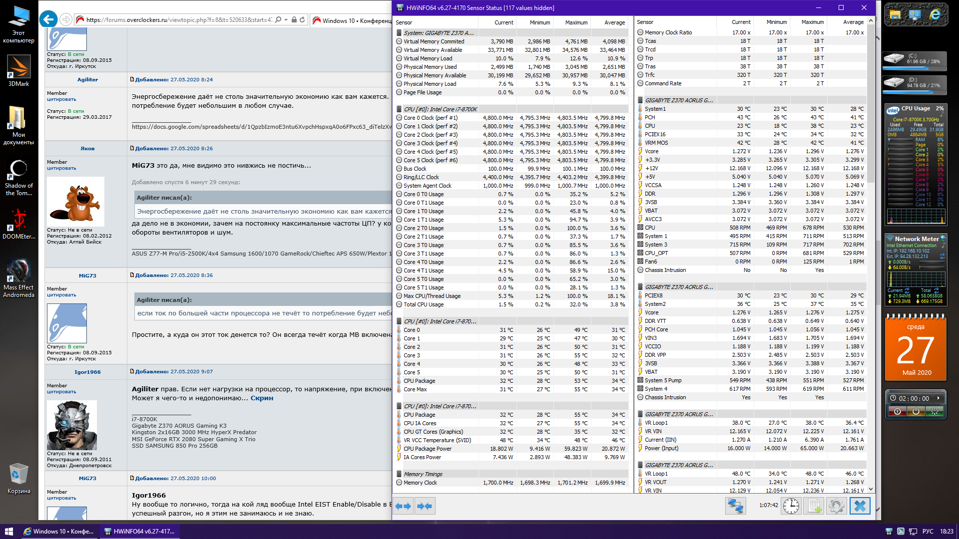 Воздушное СО НОКТЯ Д-15, процессор вроде не самый холодный со скальпом правда, время там видно больше часа. Обороты на башне минимально возможные, температура на ядрах 31 градус при комнатной 24. Зачем мне минимальные частоты процессора в простое и напряжение?