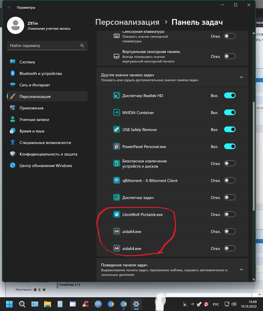 Обнаружил "упоминание" удалённого софта в разделе "Персонализация/Панель задач/Другие значки панели задач (см. скриншот - выделены красным). Ни в проводнике, ни в панели задач, ни в реестре таких записей нет - зачищено! А тут есть... Как убрать?