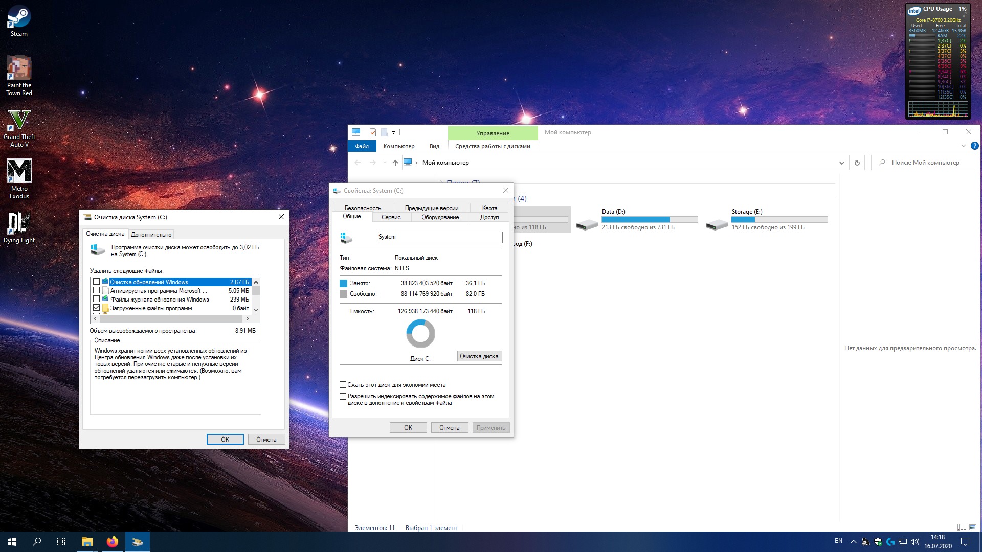 и где у вас всего 20-25GB занято? или речь только ро папку C:/ Windows? если да, то у меня она весит 18.8GB. (гибернация отключена, ФП по усмотрению системы)