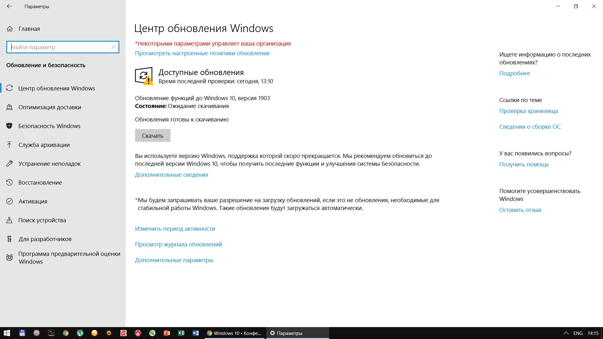 OLD Hunter у меня стоит обновление внутри билда - 365 дней, но на 1809 она все равно прилетела - так как сказали что будут принудительно переводить с билдов ниже 1809. предположу что обновиться только до 1903 а там надо будет убирать ограничение с 365 дней и... чтобы не пропустить и вкл вовремя обратно, чтобы обновившись на 1909 не успело глюкануть и попыталось обновиться на 2004.... хотя... у меня само не обновляется - информирует что есть обновки но не ставит!