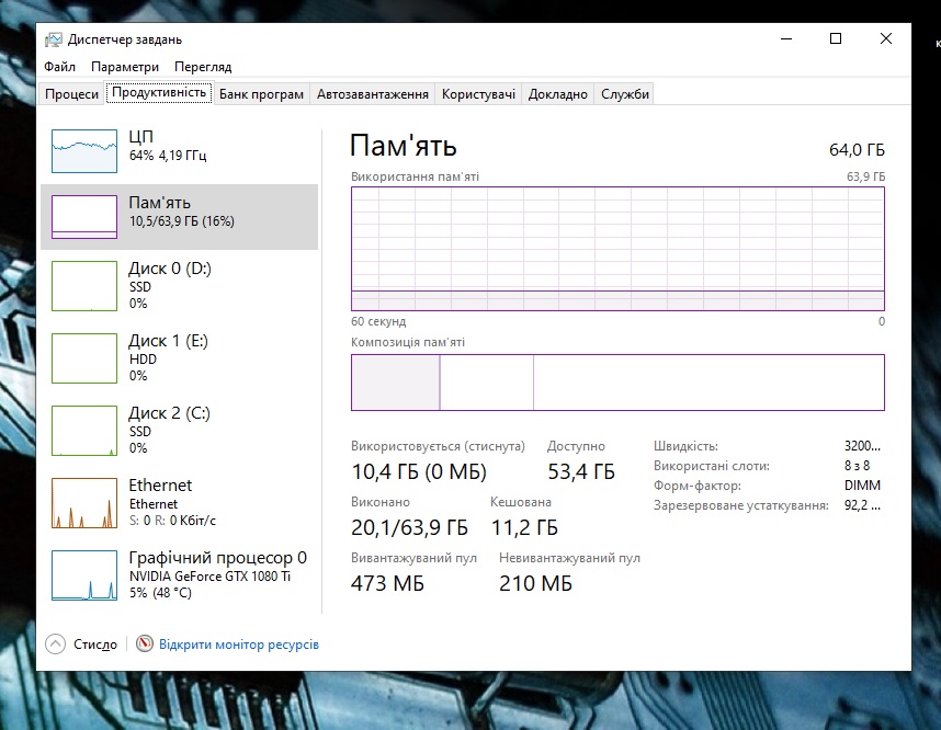 Запустил бенч Horizen Zero Dawn и увидел в ОЕД зашкальные показания (рама 11,5Гб а своп 21Гб), при этом в ДЗ похожая картина. Подкачка отключена вообще. Или во второй строке отображается общая (кешированная и физически задействованная) память? Я что-то заплутал совсем. как бы нехватки рамы нет, глюков софта тоже не видел, но самы цифры меня не радуют.