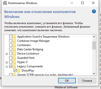 Direct Play включен? в установке удалении программ - компоненты windows