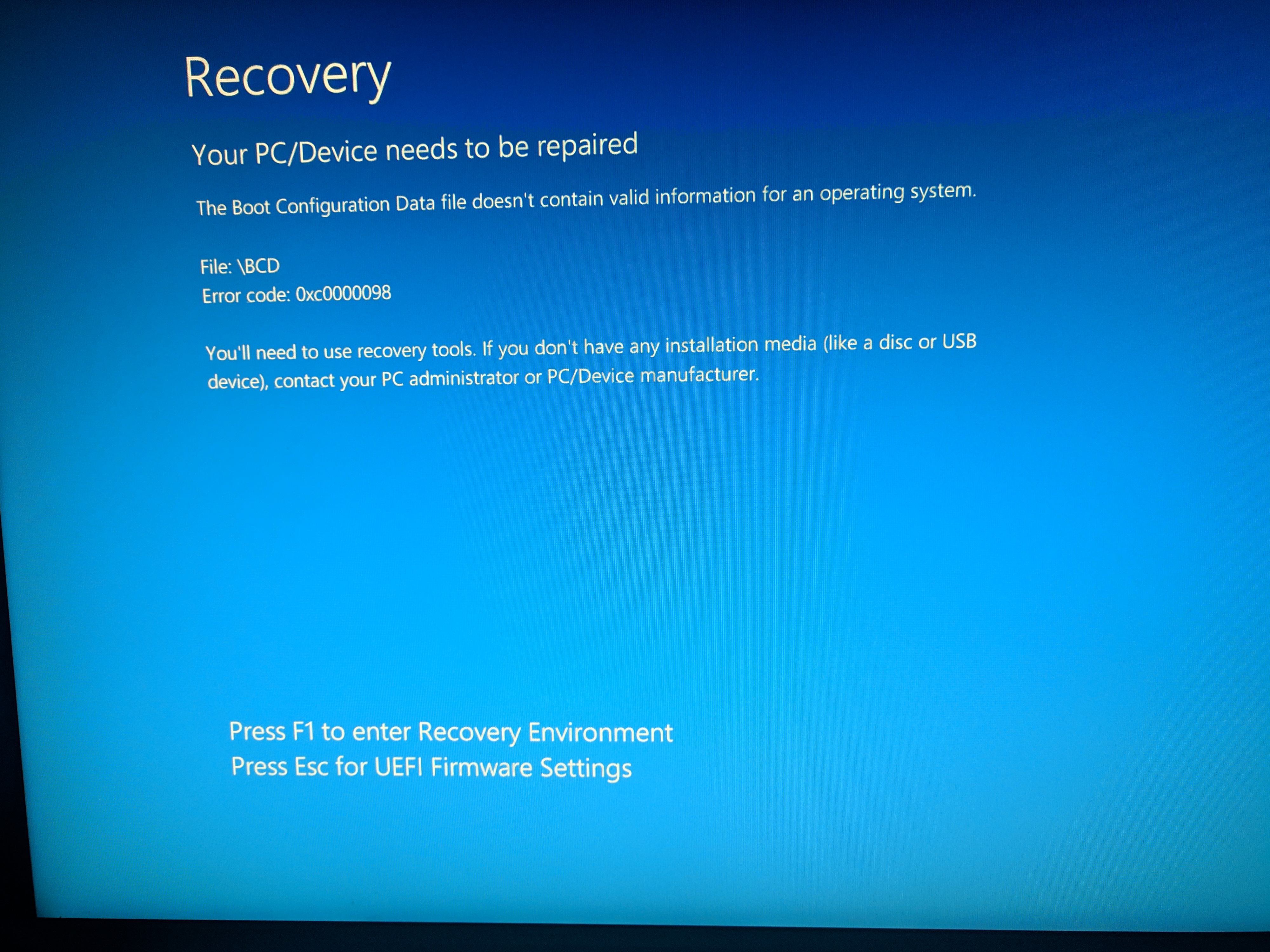Может просто переставить заново раз не получается восстановить загрузчик? 1. Оставить только UEFI в биос. 2. Оставить только накопитель на который ставится система. 3. Удалить разделы(информация будет утеряна) и установить систему в неразмеченную область. НЕ создавать самостоятельно раздел для системы. 4. Profit.