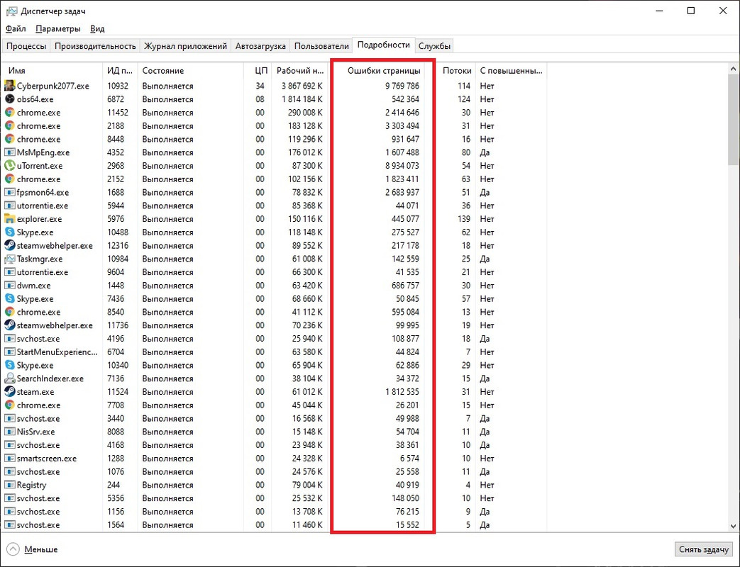 Cyborg39rus Это вообще не ошибки. Это Page Fault. Значит что процесс захотел получить данные которых нет в рабочем наборе. Раз их нет нет то их надо туда поместить, если они есть в оперативной памяти но с другим приоритетом то они поменяют приоритет и станут часть рабочего набора, если же в памяти их нет то будут прочитаны с накопителя. Это нормальное поведение операционной системы и приложений. Короче если вы не понимете как использовать этот показатель то он вам совсем не нужен.