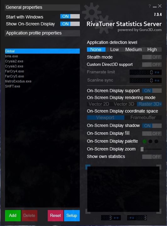 BY_Pashka Ханыга вы наверное не поняли запрос. Повторюсь, мне надо чтобы ВСЕГДА игра стартовала без всякого OSD. Независимо от того, смотрела я FPS при прошлом запуске или не смотрела. Я вообще редко его смотрю, и уж точно не хочу еще держать в голове что его надо вырубать после этого. Карочь надо чтоб функция была только "по требованию". Чтоб работало корректно без необходимости еще и выключать OSD при предыдущем запуске.