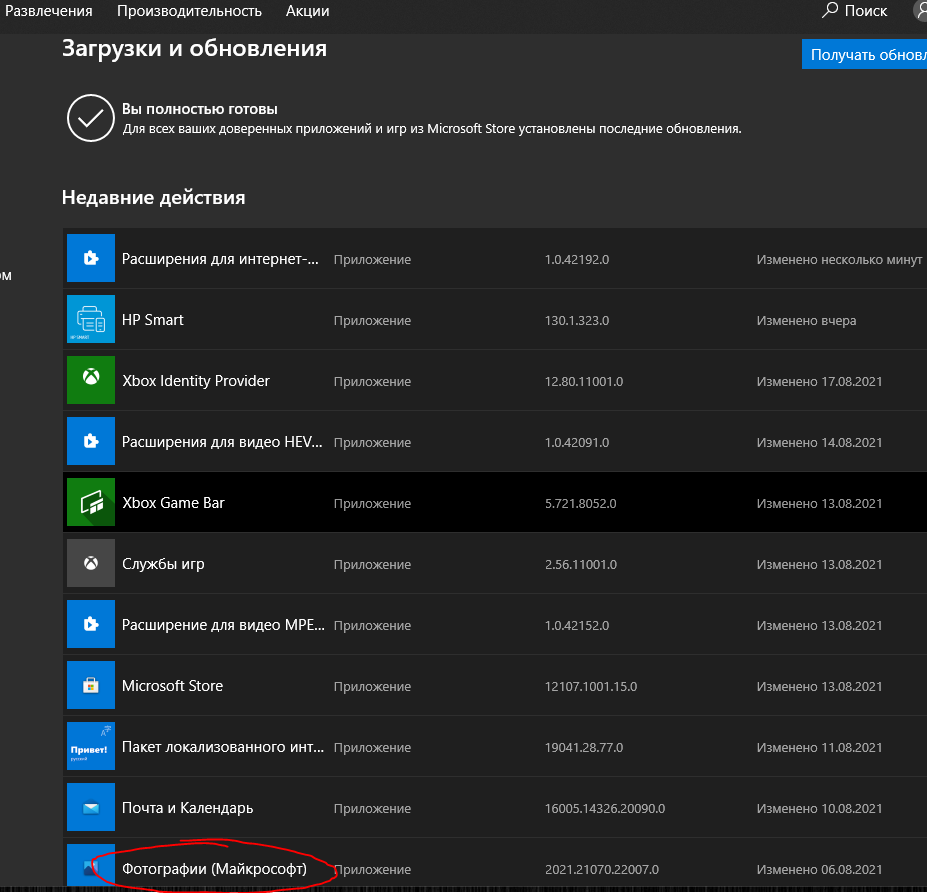 darthvedar переустанавливать само приложение "Фотографии" - я пробовал, не помогает. Видимо приложение удаляется, а обновления эти остаются где-то в системе. Хочу сами указанные обновления удалить.