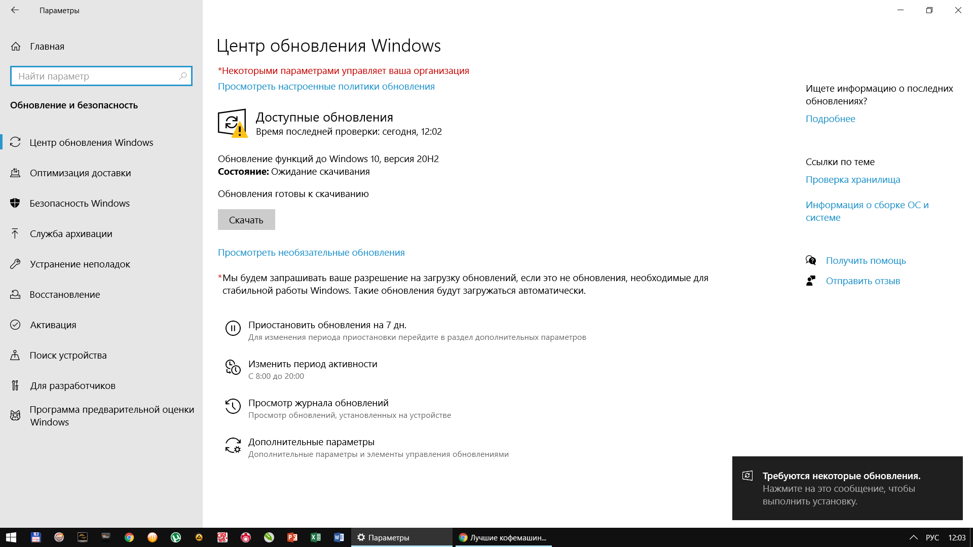 После обновления с 1909й до 2004 я поставил через локальную политику обновление внутри 2004й версии. А теперь хочу обновиться на 20H2 (предпоследнюю версию). Поменял там 2004 на 20H2, но за день ничего не прилетело. Может надо выкл совсем, а после того как прилетит 20H2 ограничить обновления в пределах конкретной 20H2 версии???