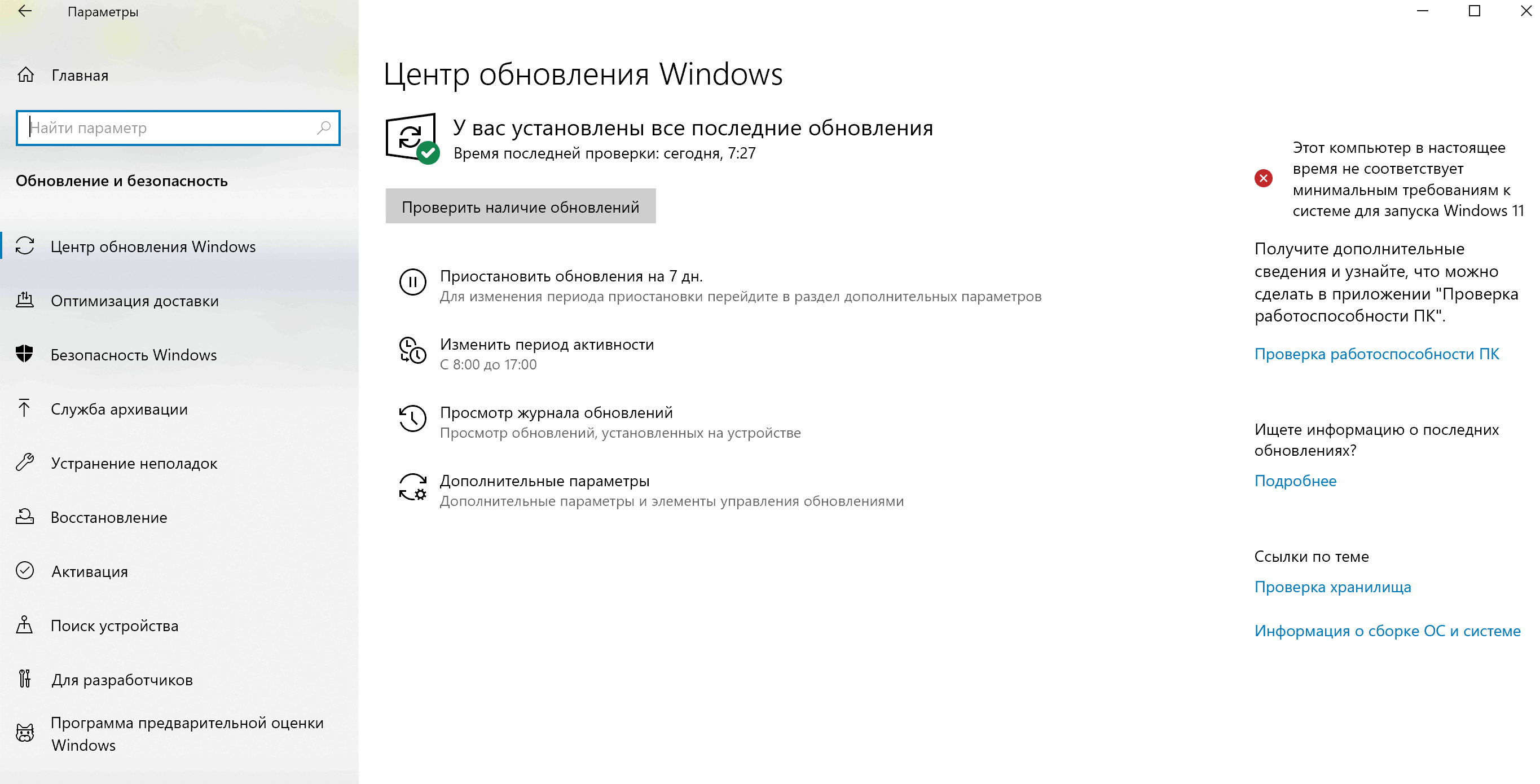 Как убрать надпись с красным крестом? Этот компьютер сейчас не отвечает всем требованиям к системе для Windows 11 Она меня пугает Windows 11 ставить не планирую.
