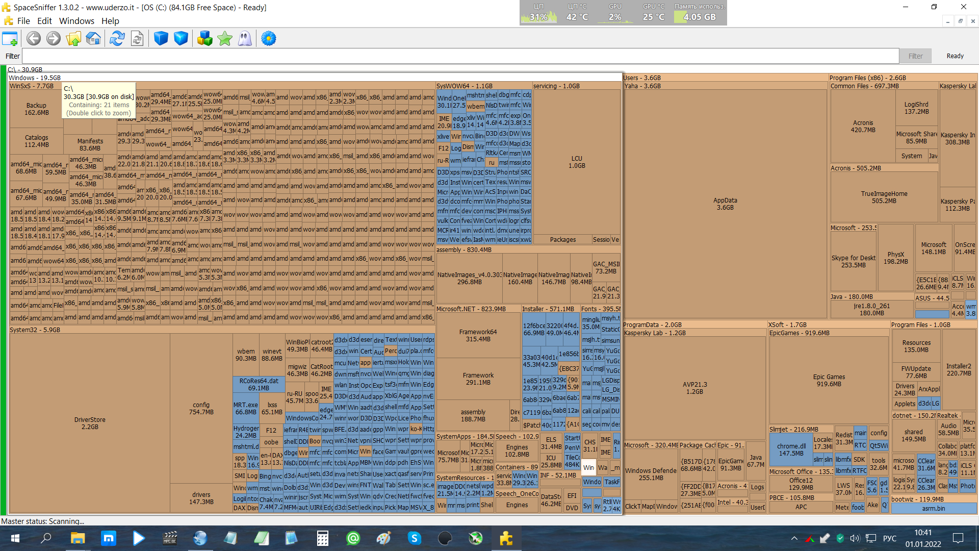 С Новым Годом, коллеги! Столкнулся с такой проблемой. С недавних пор на системном диске каждый день стало увеличиваться место на 700 мб примерно. Началось это после того как установил Microsoft Office Для дома и учебы 2021, но это не точно. И чтобы убедиться в этом, хочу найти виновника. А для этого надо увидеть историю изменений объёма диска. Есть ли в винде утилиты с подобным функционалом? Либо посоветуйте стороннюю.