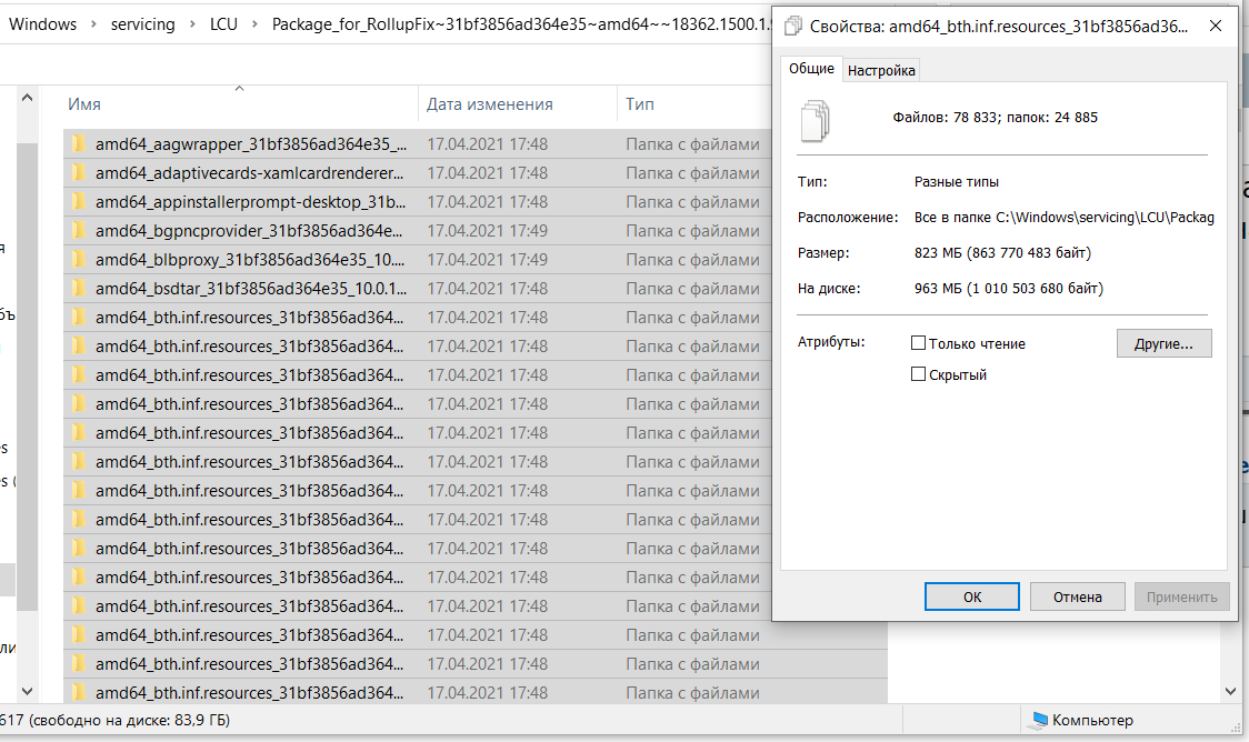 Камрады, помогите, неделю-другую назад решил почистить диск С, т.к. отчего-то за пять лет система на диске С разрослась до огромных размеров. Юзал SpaceSniffer, удалил много чего пользовательского, но потом оказалось что сильно много места занимают рецедевисты в лице C:\Windows\SoftwareDistribution и C:\Windows\servicing\LCU. По статьям в интернете чистил их, командами. После этого Центр обновлений предложил обновится: