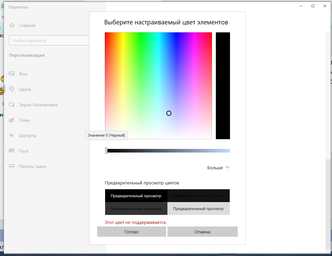 dns выбрал черный - написано - "Этот цвет не поддерживается"... А вот в W11 - он черный - почему - не знаю - Персонализацию не трогал... возможно в W11 какая-то опция это делает, которой нет в W10