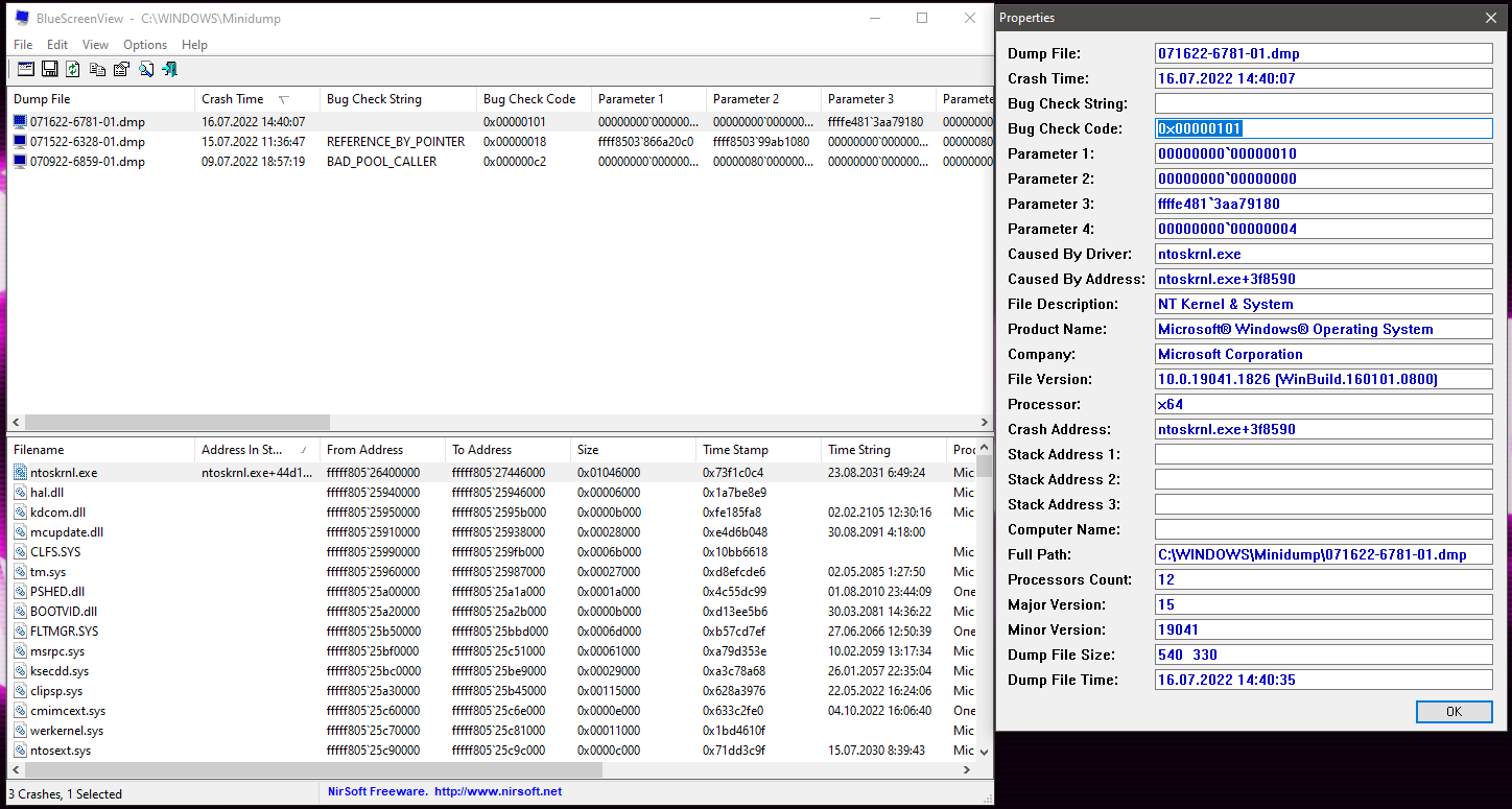 Стабильно раз в день 3й день подряд вылетает синий экран. каждый раз ошибки новые - BAD_POOL_CALLER, REFERENCE_BY_POINTER, clock watchdog timeout. независимо от нагрузки - первый раз вылетело после нажатия на кнопку питания, второй раз вылетело просто на рабочем столе, когда меня не было за компом и третий раз вылетело в игре при установке bluestacks уже тестил все диски на ошибки средствами винды, тестил оперативную память средствами винды, аидой, мемтестом. переустановил дрова видеокарты под чистую, удалил скрытые драйвера в диспетчере устройств. что делать дальше?