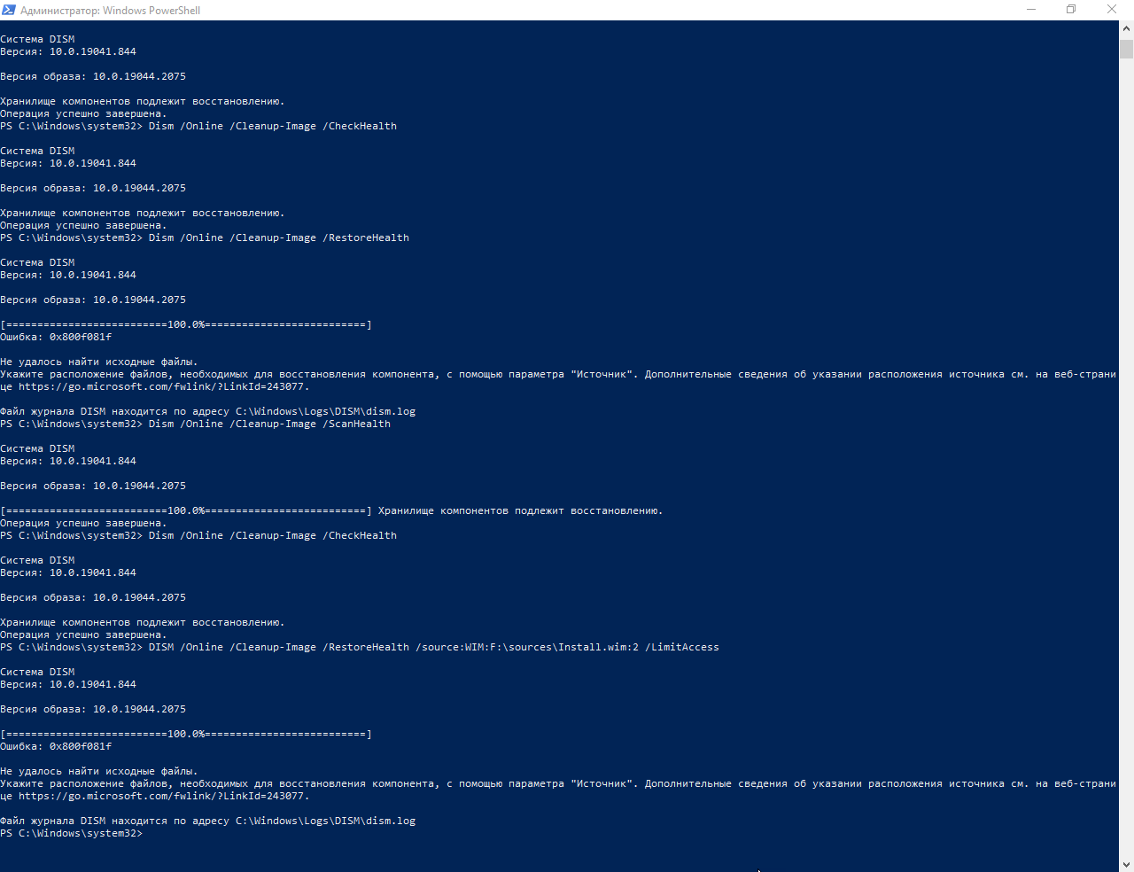 Ничего не помогает: ошибка 0x800f081f "Не Не удалось найти исходные файлы"... и т.д.