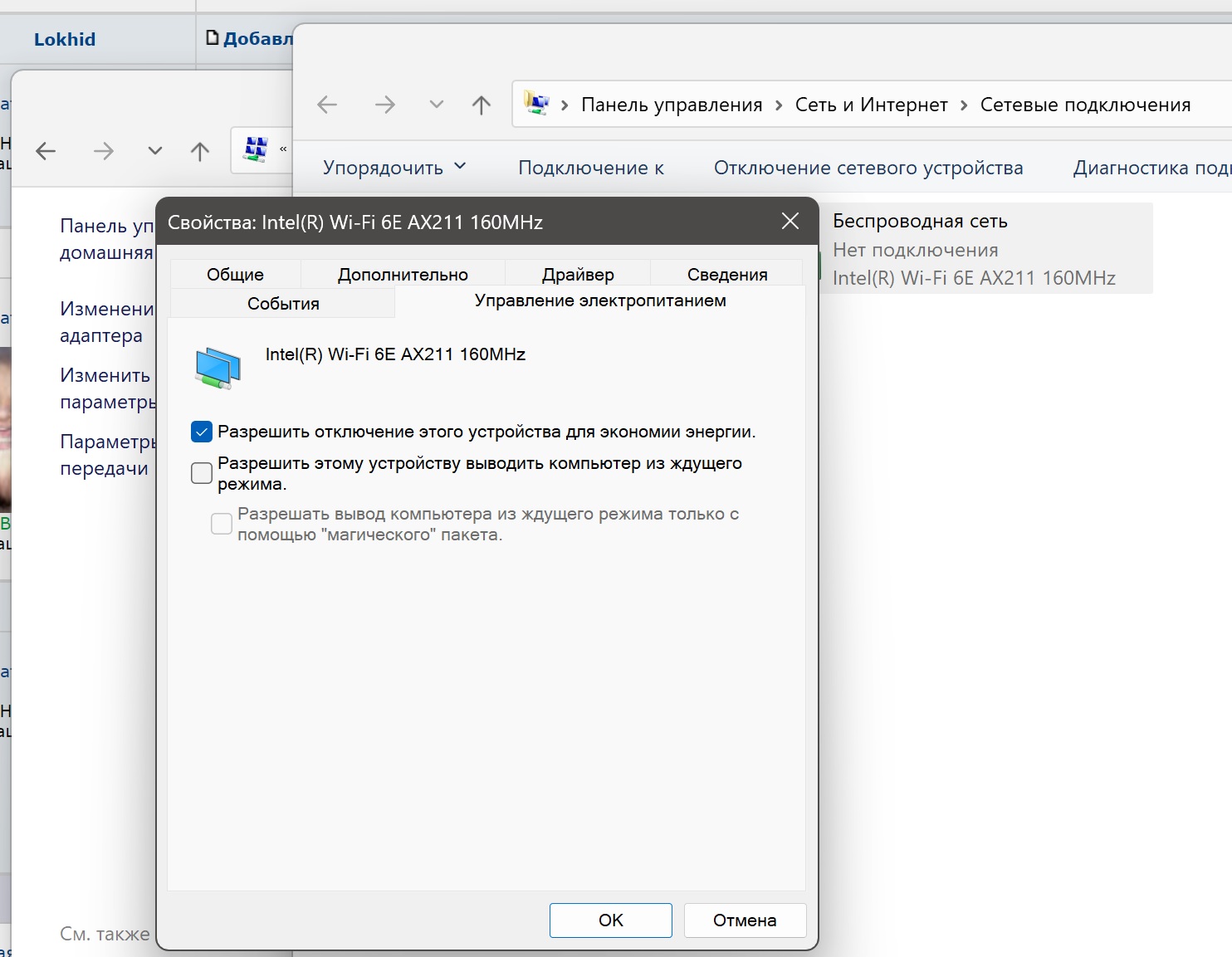 На Win11Pro у WiFi адаптера в Свойствах нет вкладки Управление питанием. Вряд ли для этого устройства такая возможность недоступна. Нужно где-то в другом месте искать?