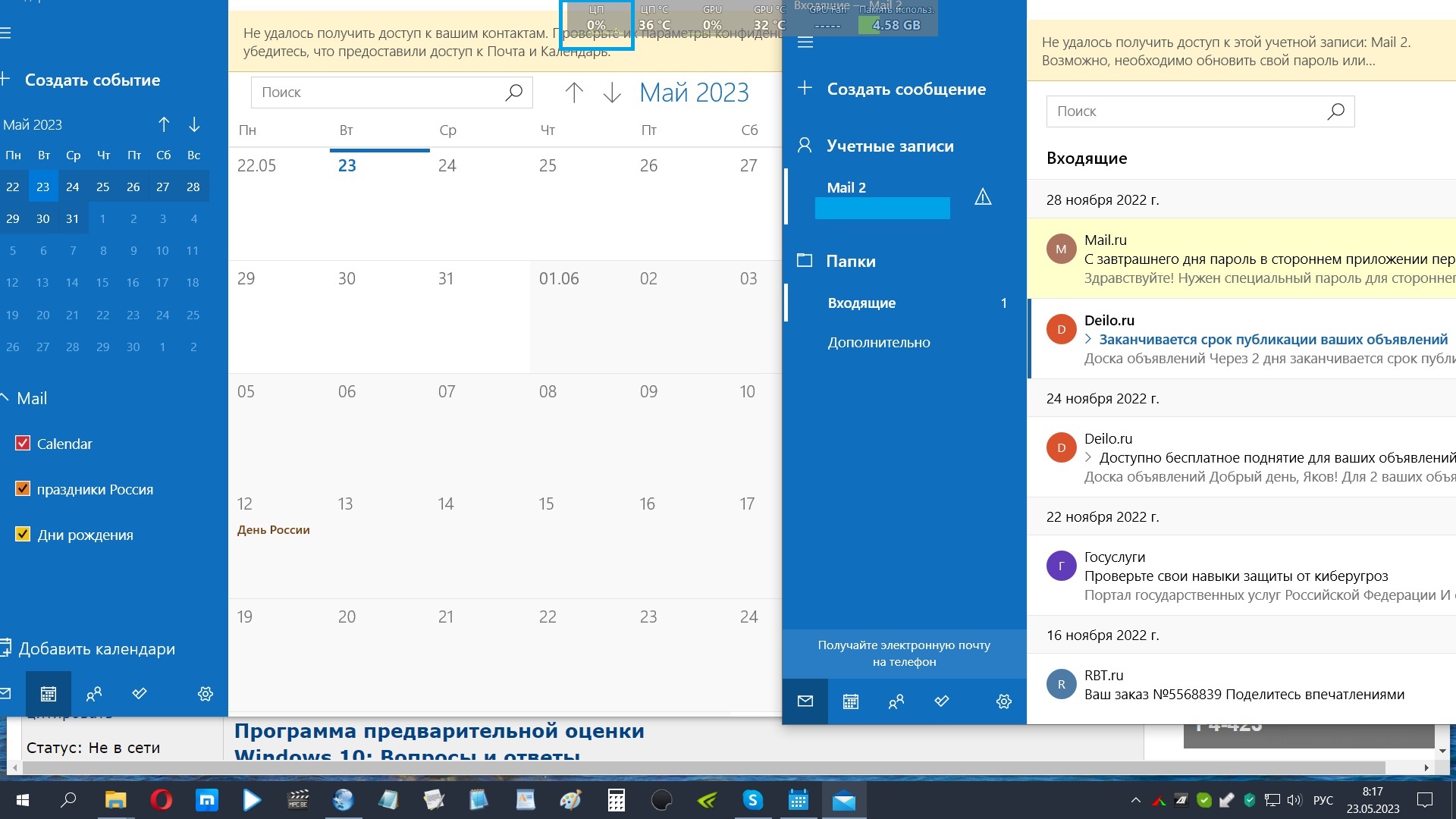 Не знаю, было ли это приложение на Windows 10 21H2, но тогда таких проблем не было, по крайней мере я этого не замечал. Хотя там и процессор был намного более слабый. Когда же я обновил железо, и решил поставить винду заново, и поставил версию 22H2, и все обновления на нее, эта проблема появилась. Первоначально я заметил это по температурам в простое, которые стабильно были выше 40 градусов, потом заметил что в простое процессор работает на частоте 5 ГГц, и не снижает её, после чего и наткнулся в диспетчере задач на процесс Microsoft Outlook Communications, который загружал процессор от 6 до 10%. Так же отмечу, что при этом работающем процессе, количество баллов в Cinebench R23 снижалось аж на 2 тысячи, что как раз и составляет примерно 10%.