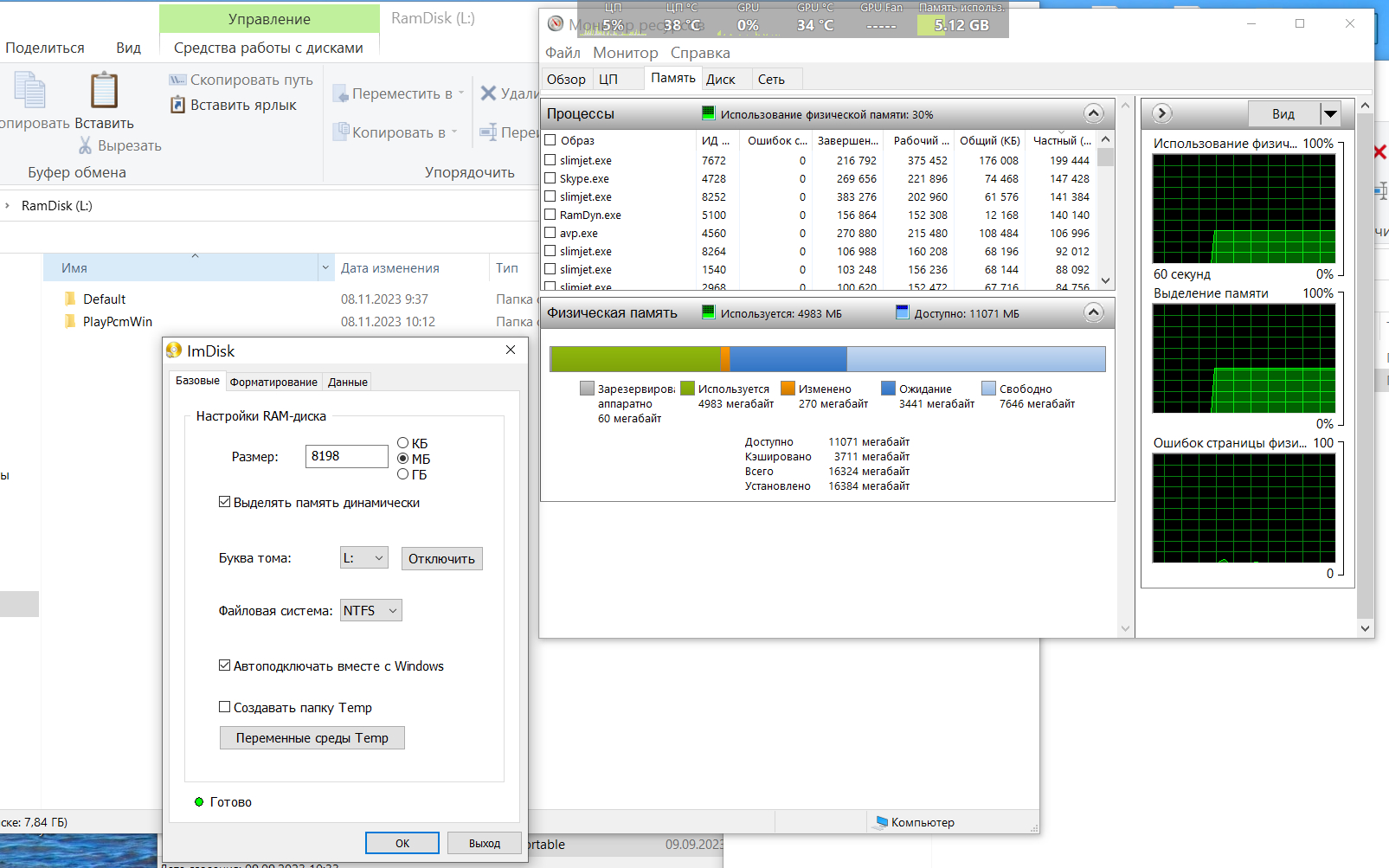 так же, включал какое то время назад, на диске С:, размер по выбору системы. затем снова отключил, ОЗУ 16GB(4х4), + динамический RAM-диск до 8GB (под кеш браузеров и аудиоплеер)