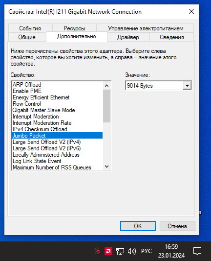 Если бы они работали, то я бы здесь не спрашивал. Они для WS2012 и на 10ку не вкорячатся. Похоже что у 10ки тот же стоковый драйвер, что и у 7ки. У обоих нет Jumbo Packets. Вот только интеловский драйвер от 7ки на 10ку не ставится.