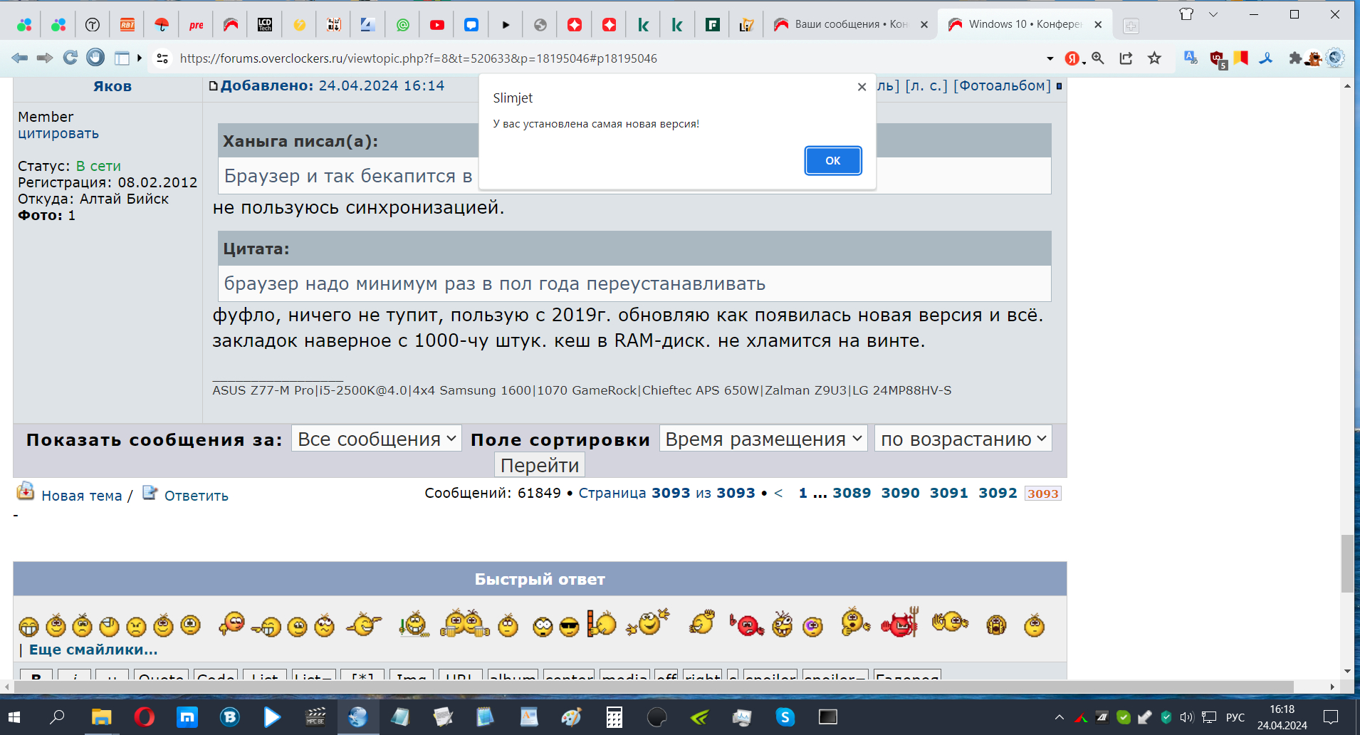 Чем за*рать? Обычным использованием по назначению? Если ты этого не замечаешь - твои проблемы. Я лично вижу ощутимую разницу между свеже установленным браузером и поработавшим хотя бы пол года. При этом никакие чистки кеша и тд. не помогают.
