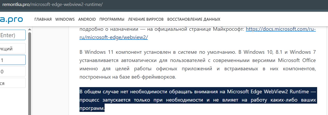это понятно, отключил в планировщике всё что касаемо Edge update, и webview2 runtime прекратило устанавливать, а то ведь с "завидным постоянством" ставило, и запускало. а наклепа оно мне если "Ежиком" не пользуюсь?
