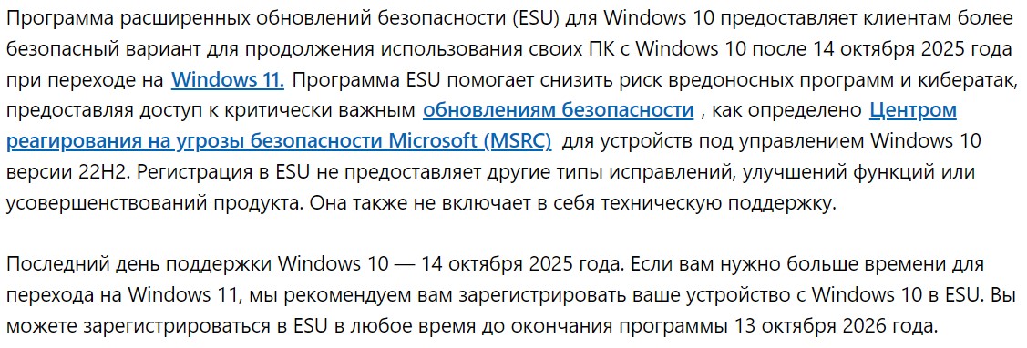 Проверял обновления сегодня - а там пришло сообщение что я могу зарегестрироваться в программе продления поддержки Windows 10 ещё на год . Вошёл в свой профиль майкрософт и там подтвердил ,что хочу получать обновления ещё год , до октября 2026 года . И всё . Поспешил и забыл скрины сделать