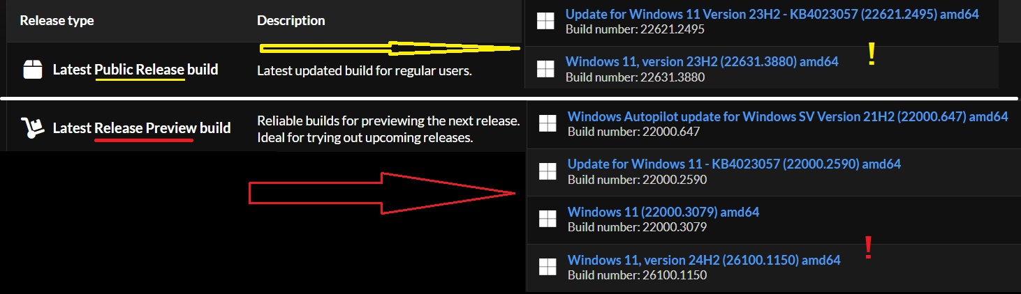 Укажите ссылку на официальный источник или на Оригинальные образы 24H2 от Microsoft MSDN/VLSC. (Wiki, comss- не ориентиры!) И ещё раз ВСЕ! выпуски (всех версий Windows) = release = релиз = выпуск - смысл слова!