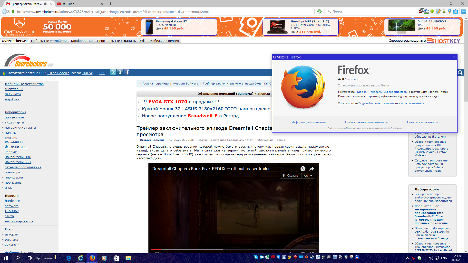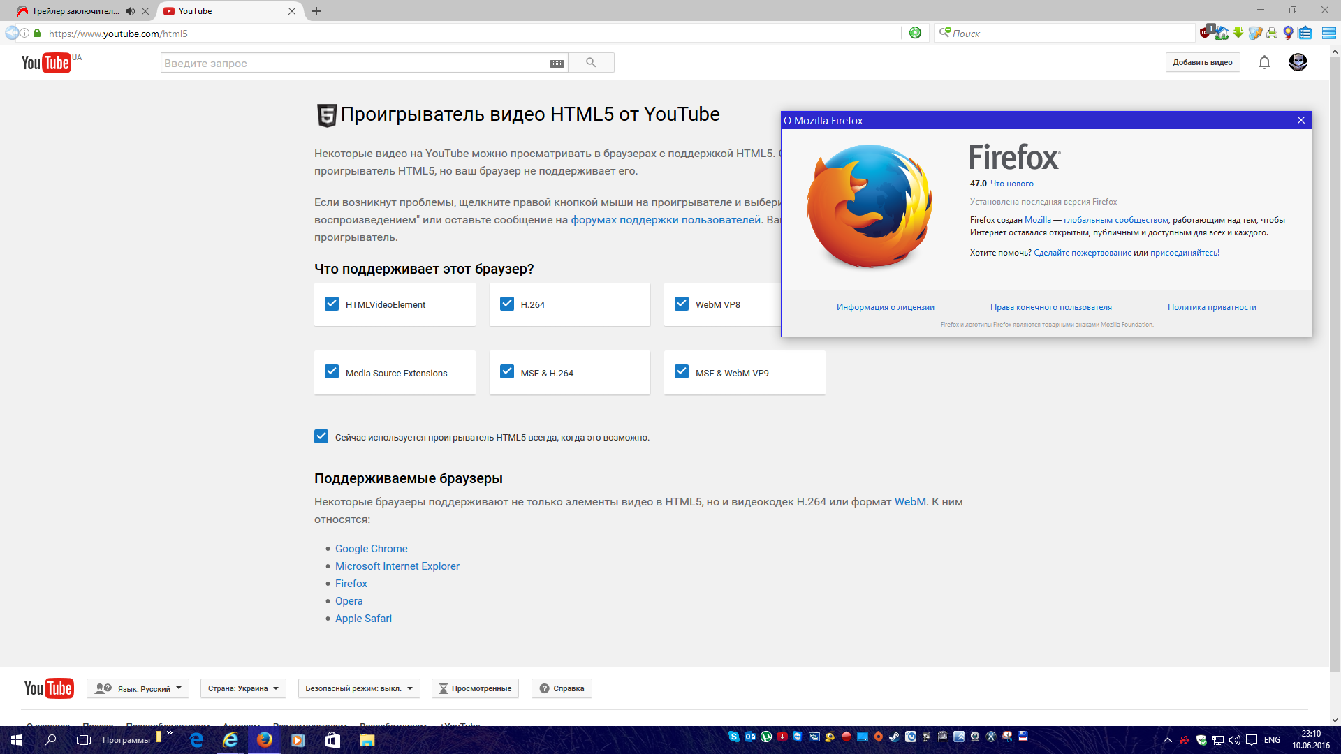 FF 47.0 Allow no-cache on back/forward navigations for https resources Embedded YouTube videos now play with HTML5 video if Flash is not installed. - и плагин не нужен) В 48-49 мультипроцесс уже может быть.