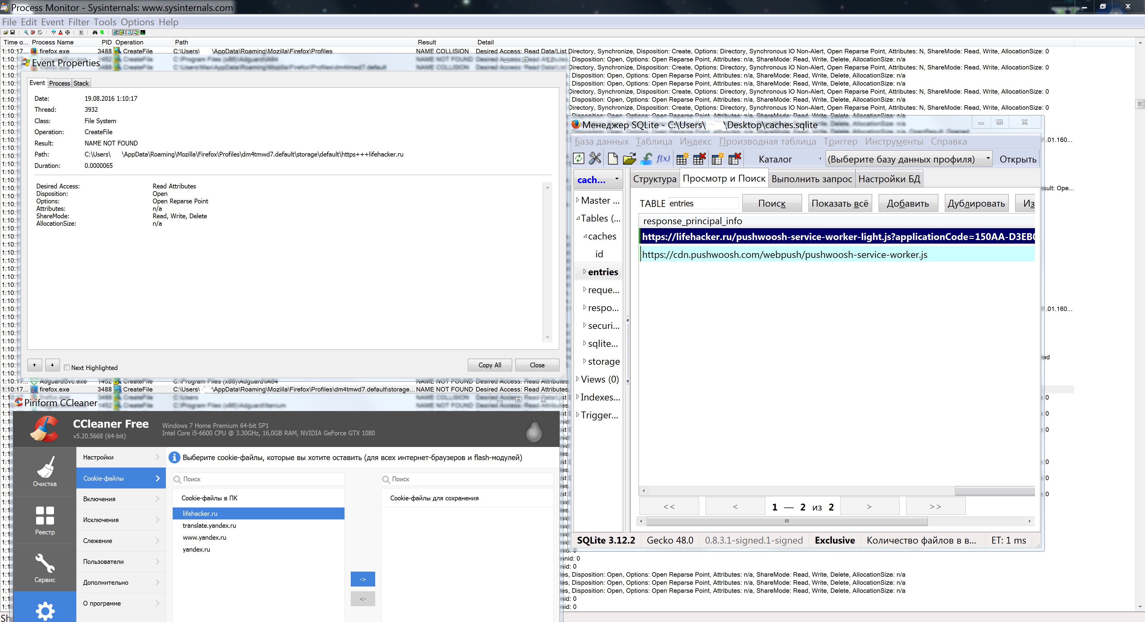 В общем, какая-то хренота с этим CCleaner, не могу понять откуда в нём появляются записи, только всякий хлам умудряется сохраняться/находится, забавно что и кэш я отключил (помимо cookie) и он тоже не должен был сохранится