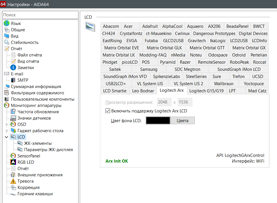 Так как большинство сайтов и ссылок уже не работают. Решил выложить свои апплеты для Logitech устройств.(и найденные в сети) Апплеты делал через AIDA64. Что бы AIDA64 показывала нужные нам апплеты нужно включить в настройках их.