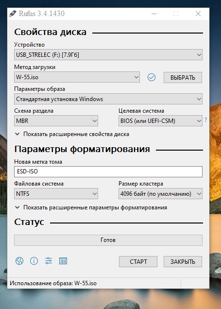 Скачал образ Win10 (сборка Enterprise LTSC v19.08), записал на флешку с помощью Rufus при использовании следующих настроек: Boot Selection: Disk or ISO image Partition scheme: GPT Target system: UEFI (non CSM) File system: FAT32 (Default) Cluster size: 16 KB (Default)
