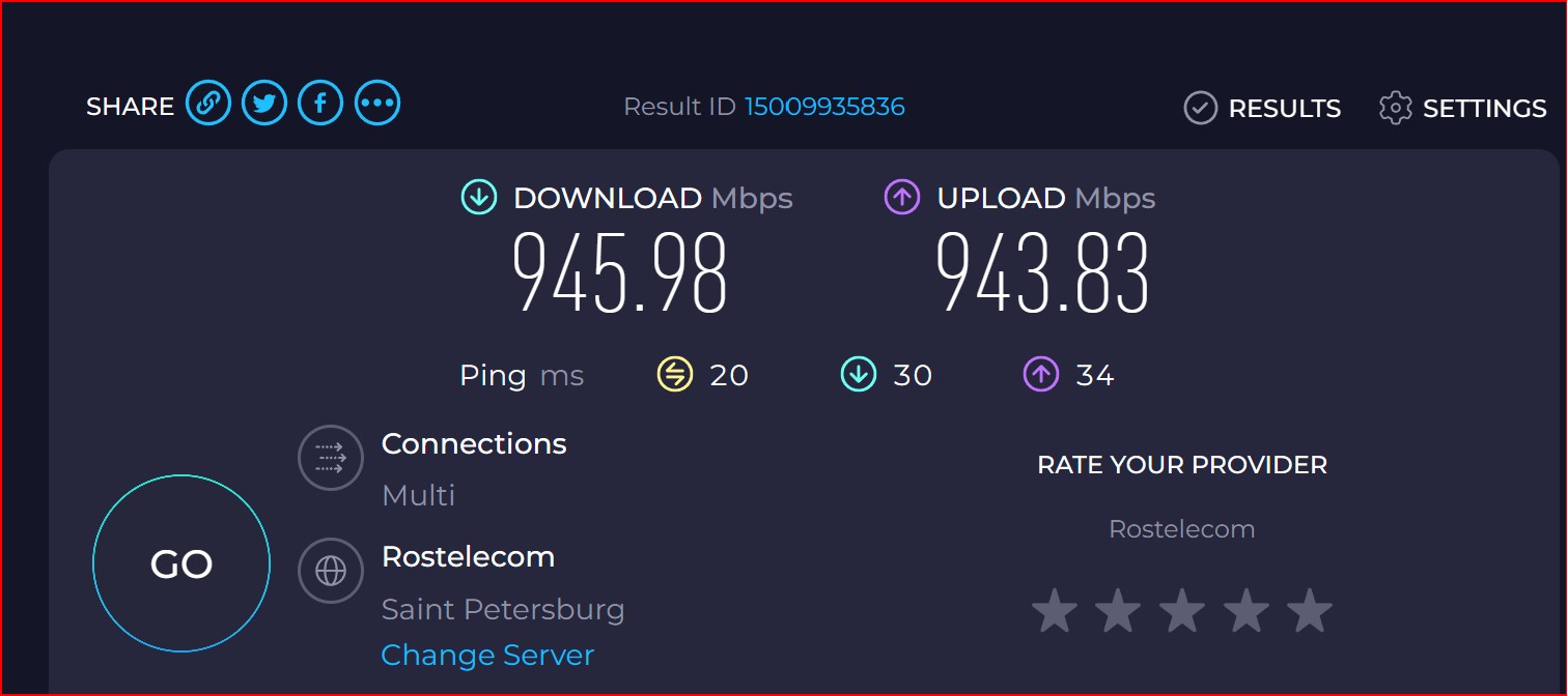 mphuZ я пробовал разные сервера, везде одно и тоже, такое ощущение что стоит какой то лимит, но тест проводился на чистой системе только установленной и свежем профиле пользователя, вот буквально только открыл и сразу спидтест, паралельно запускал firefox и chrome в отдельных окнах и там все отлично 94-94. Сам запустил на другом пк на другом интретнете (но там 300мбит) и все нормально 300-300 на edge. Не поверите наверно, но так как винда была новая, я просто ради любопытства форматнул и накатил новую, и ничего не поменялось. Хочу уточнить что это прямое подключение с pppoe соеденением.
