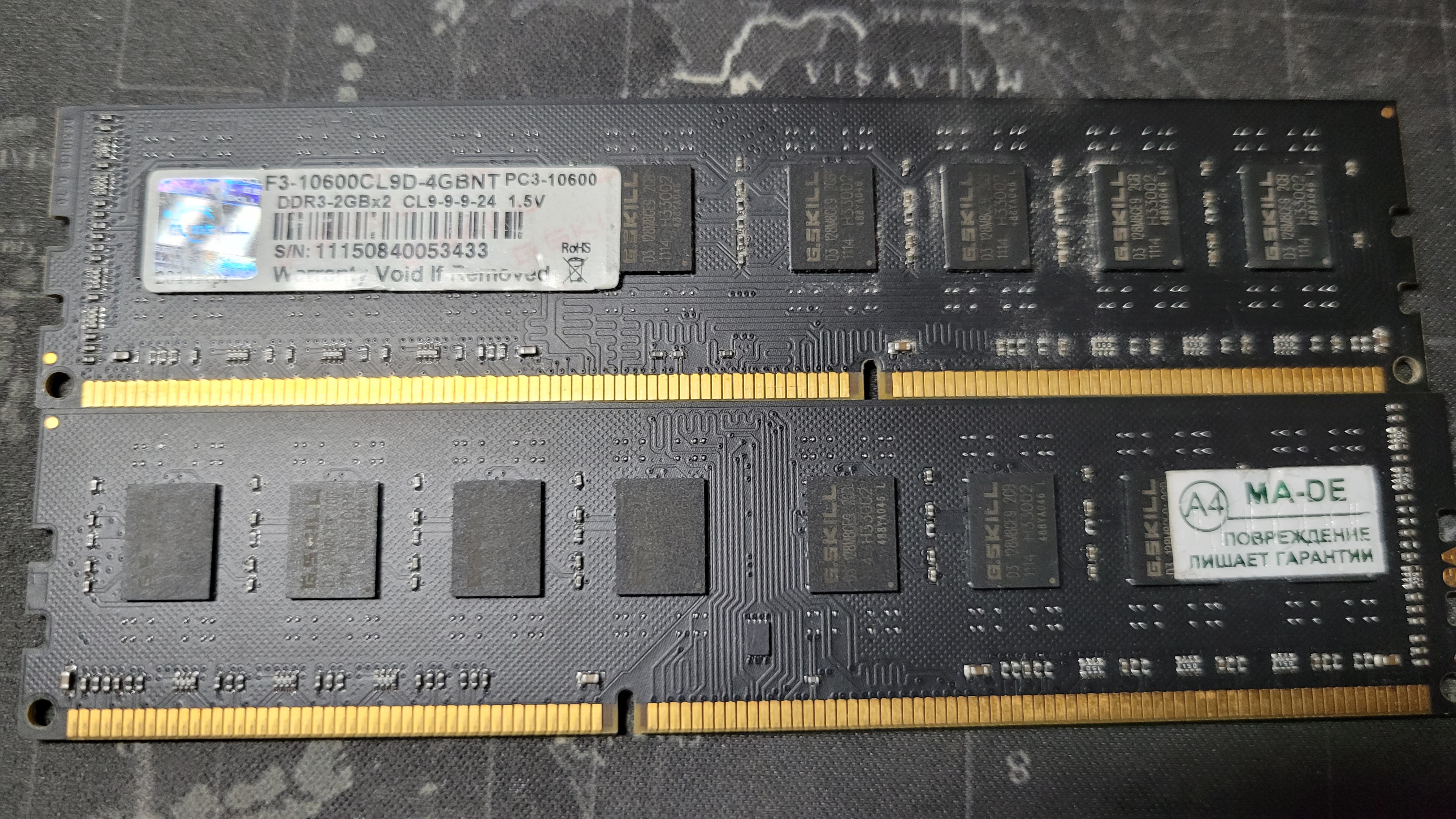 Мать P67 с процем 2500 (без К), кулером и DDR3 Samsung 2x2 гб - 1000р. Эта связка рабочая 100%. Еще отдам в комплекте две оставшиеся плашки DDR3 по 2 гб G.Skill (см фото), работоспособность которых не смогу гарантировать, давно лежали в ящике и чем мне они не понравились и почему в сборке стояли не они а Самсунг - уже не помню, честно, может в паре не хотели работать с этими Самсунгами, или с Кингстонами на другом подобном компе (у меня их кучка была небольшая разных). ПС. Пересылкой заниматься не хочу, сори.