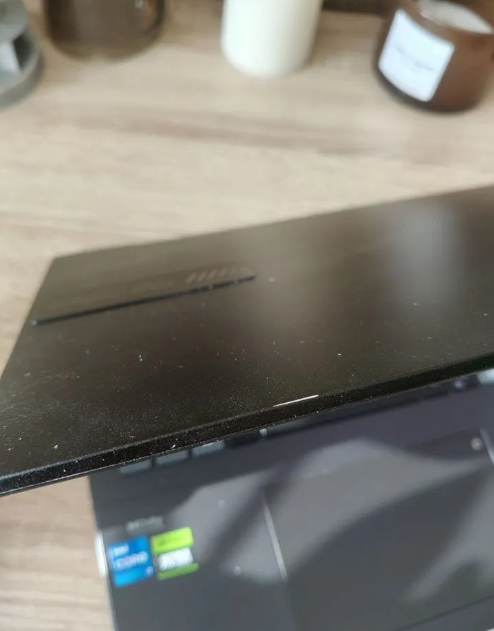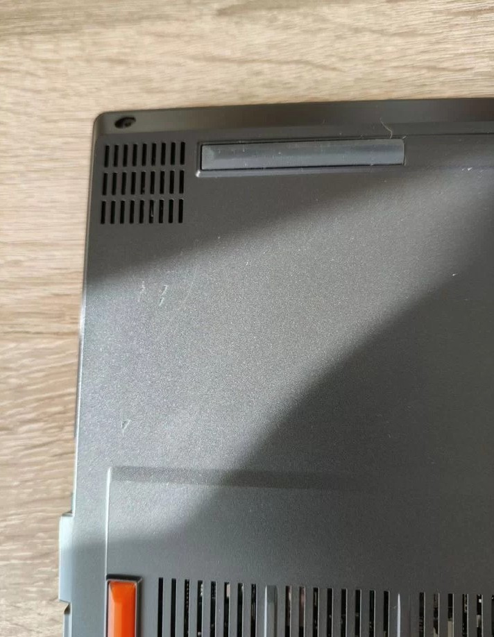 состояние - почти идеальное, косяки на фото. Первый - что-то типа царапины на верхней крышке дисплея, тактильно не ощущается, видимо где-то притёр и краска слезла. Второй - на нижней крышке с внешней стороны какие-то царапины на пластике, не очень понимаю, откуда они появились