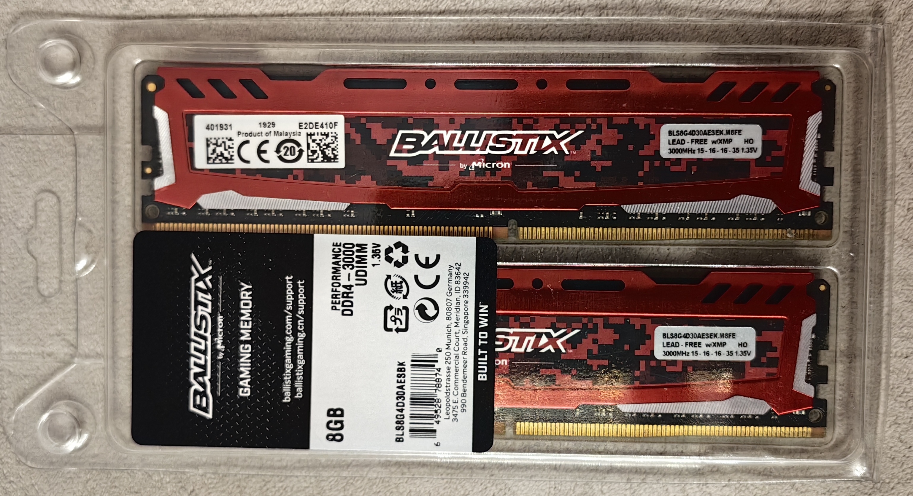 3. а) 2х8Gb CRUCIAL BALLISTIX SPORT LT (BLS8G4D30AESEK) 3000 МГц 16-16-16-35 1.35v. Легендарные баллистики на чипах E-die, отличная память для разгона, знатоки в курсе. Работали на 3600 Мгц 16-19-19-39-1T. 6300 руб. за два модуля. б) 2х8Gb CRUCIAL BALLISTIX SPORT LT (BLS8G4D30AESBK) - продано.