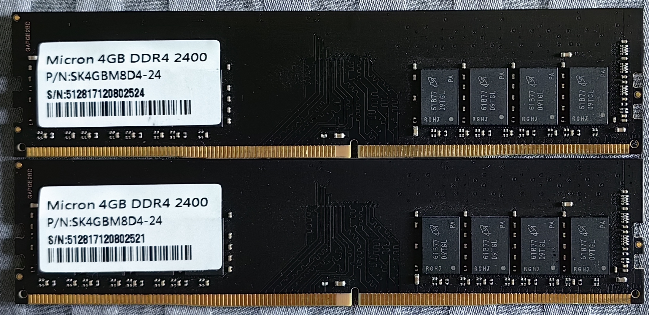 1. Модули памяти DIMM DDR4 4Gb, 2400Mhz, PC4-19200, Micron (SK4GBM8D4-24) - 2 шт. 2800 за оба модуля.