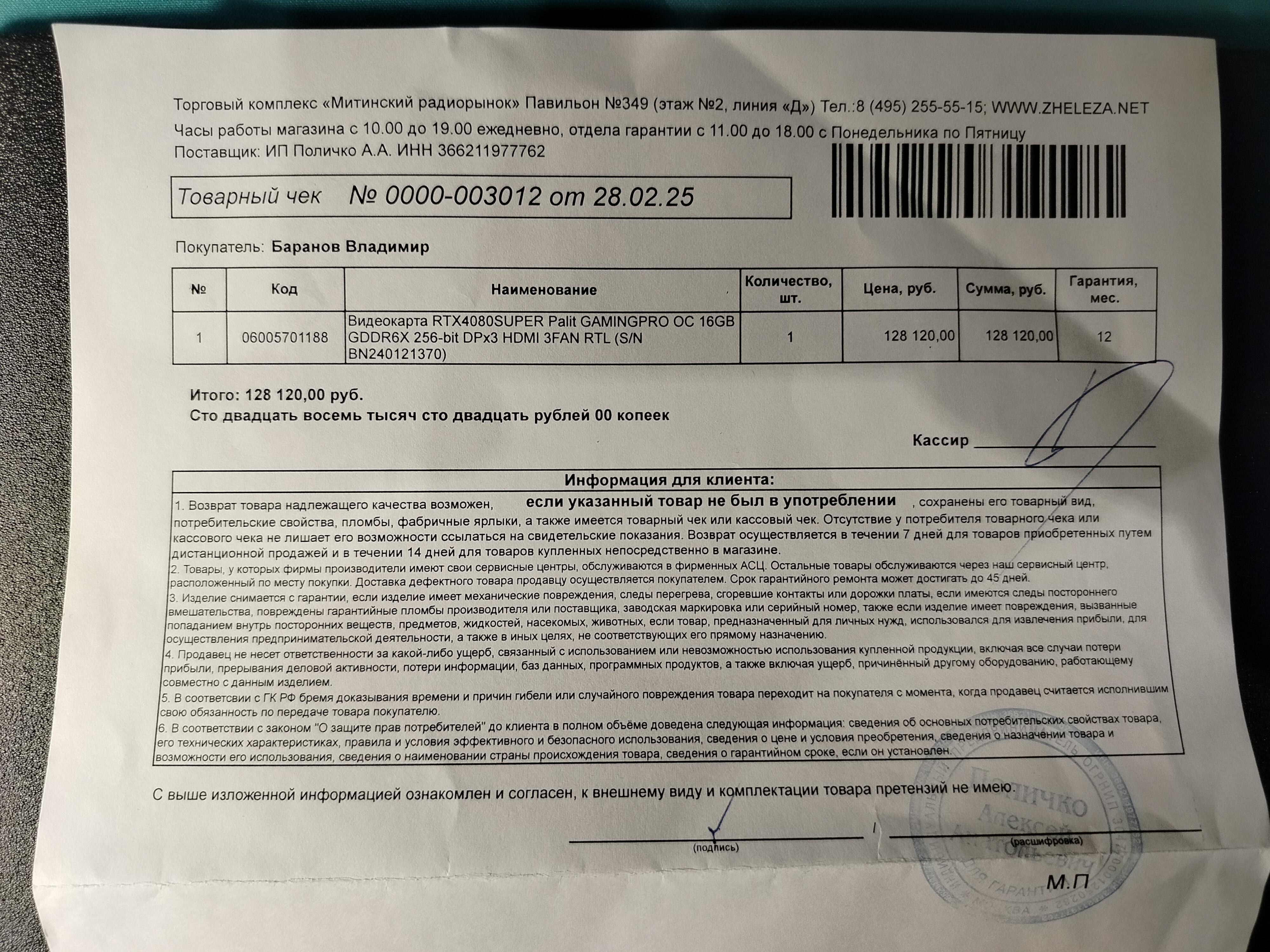 Всем привет! Продаю видеоадаптер Palit GeForce RTX 4080 SUPER GamingPro OC в состоянии бликом к идеальному, куплен в конце февраля 25 года в магазине Железа.нет, использовался только для ИИ генерации видеофайлов. Карта работала в Pinokio, в модельках: Stable Video Diffusion (SVD), LTX Studio, topaz ai. Имеет очень приличную AI производительность 836 TOPS(TOPS (Tera Operations Per Second).