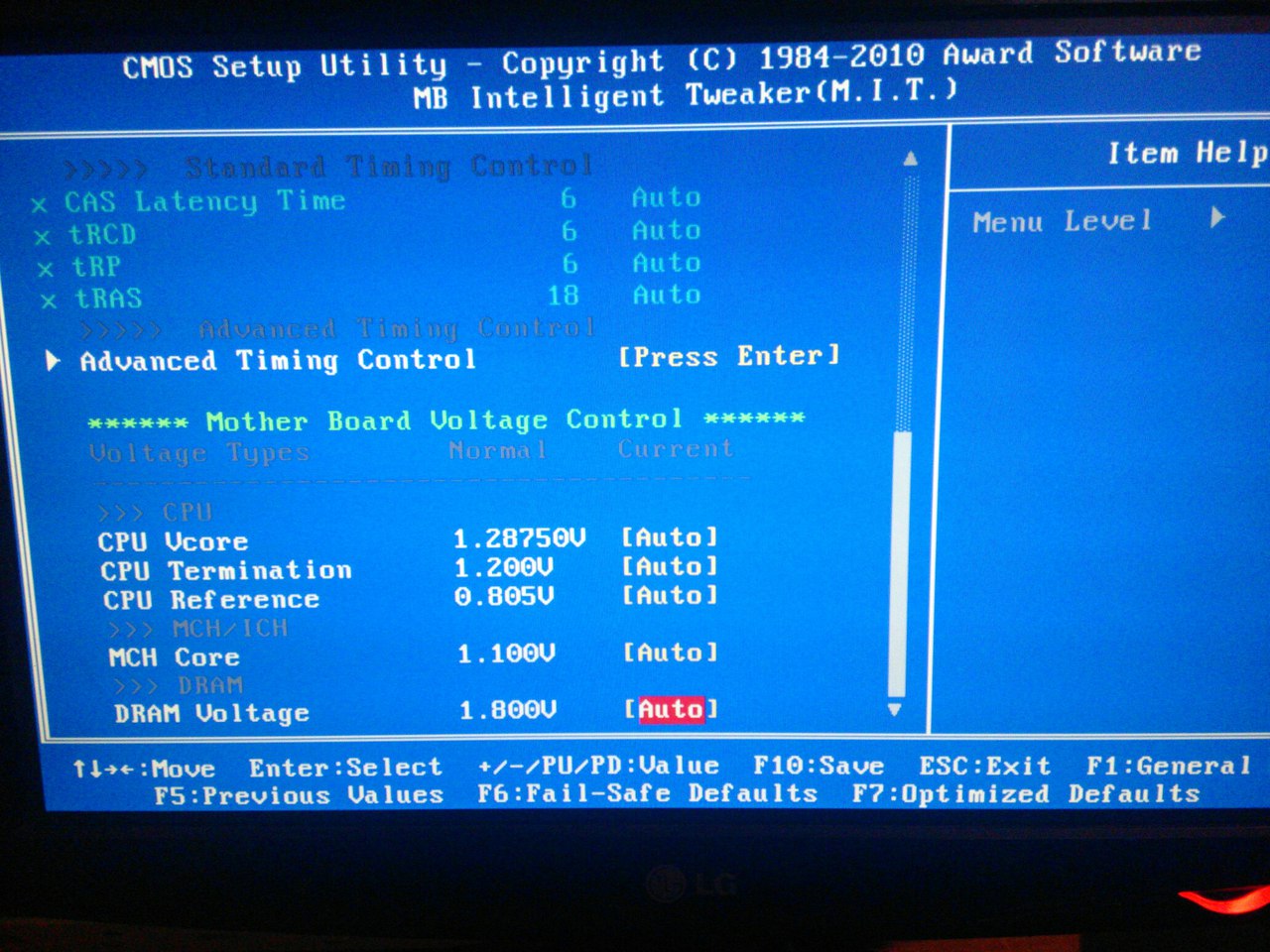 Я пробовал выходить за рамки памяти, так он в круглый ребут входить стал(но без смены питания), там было 1333, если выбрать "SPD Multi Auto" MCH Core 1.2 только, 1.25 нет Заставка загрузки Windows - процесс загрузки не появляется.