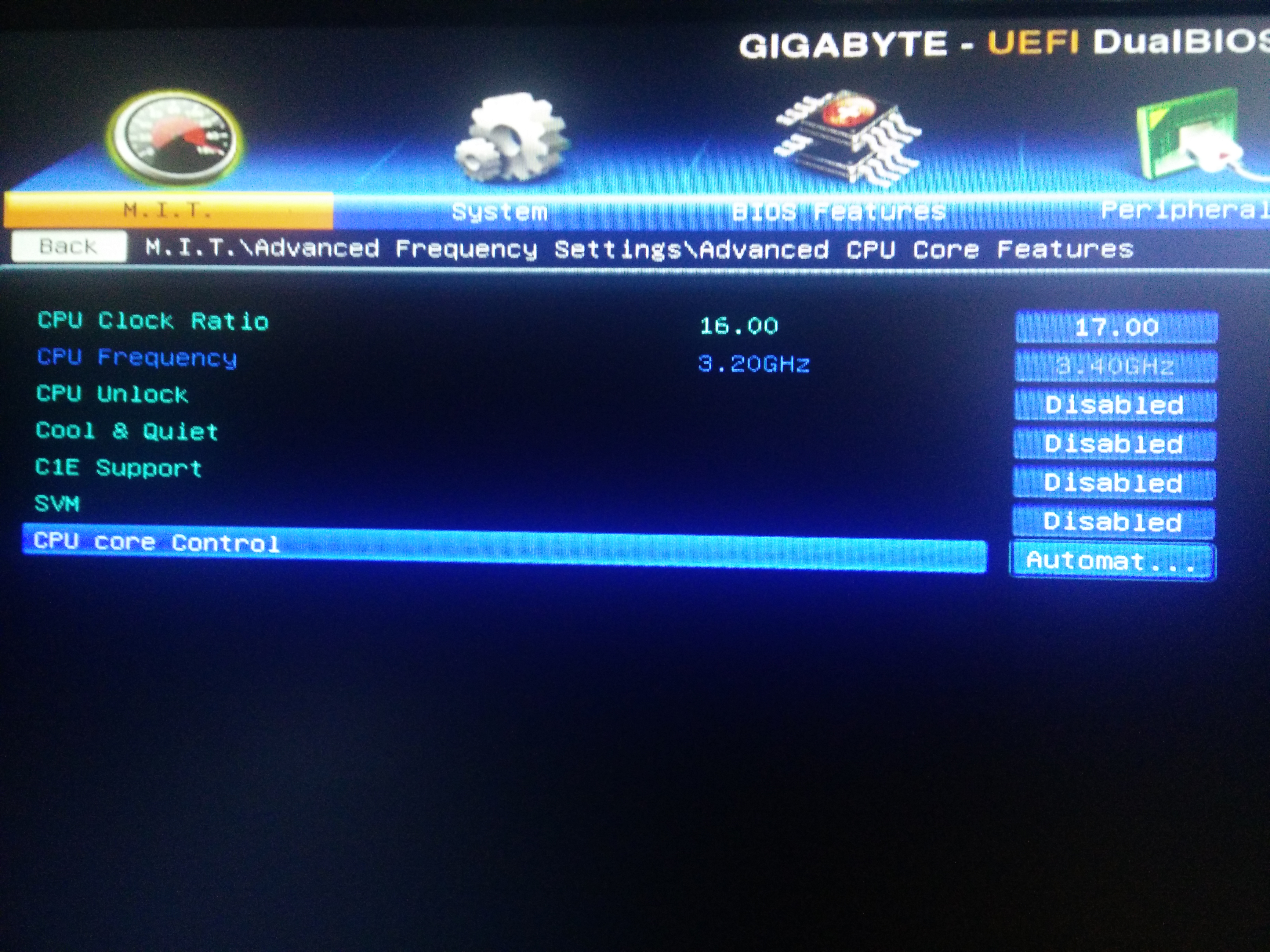 Вот же я тугой) Спасибо, увидел, отключил. На 2600 стартанул, частота сейчас 3400, но... одного ядра... все остальные по 3200. Там есть СPU Core control. Сейчас стоит в авто. Его переключение что-нибудь даст