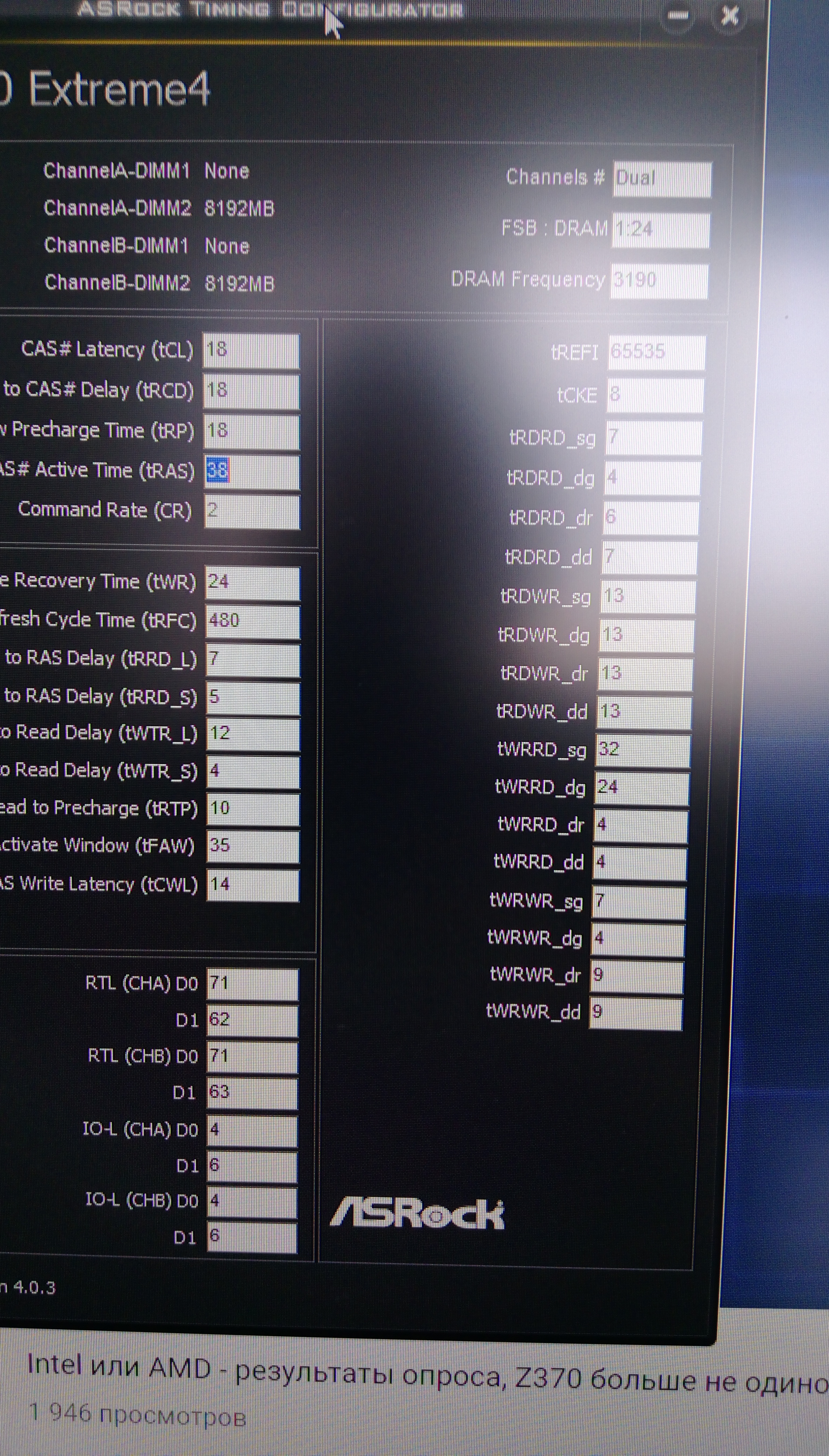 N1ghtwish Ну да Asrock взял из-за количества фаз питания (в будущем планирую скальп и разгон кофейника, когда гарантия кончится) и цены. Как мне показалось, тонких настроек именно таймингов у нее не мало. Don't Hurt Me Спасибо за совет. Надо подкрутить. Опыта в тонкой настройке таймингов маловато, хотя и стараюсь изучать вопрос, и такие советы особенно ценны.