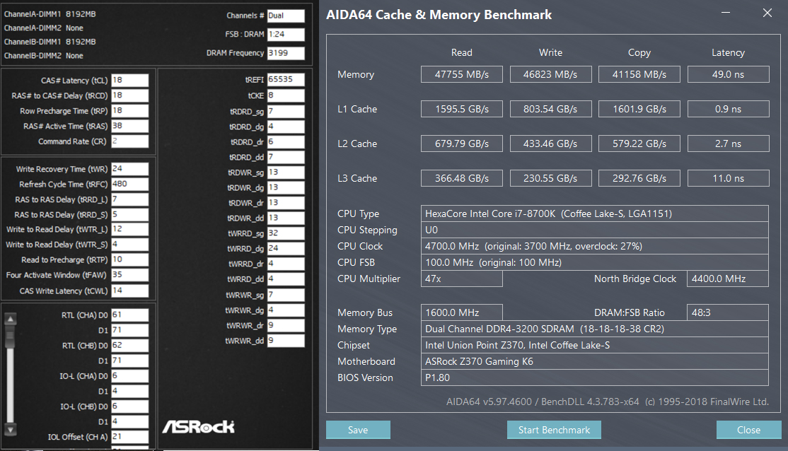 zDay хреновые у тебя показатели для 3200 с такими таймингами, и тайминг trefi должен быть 65535 - сразу +2000 к показателям. На моих 18-18-18-38 в аиде было почти по 49к чтение запись.память тоже на самсунг-чипах